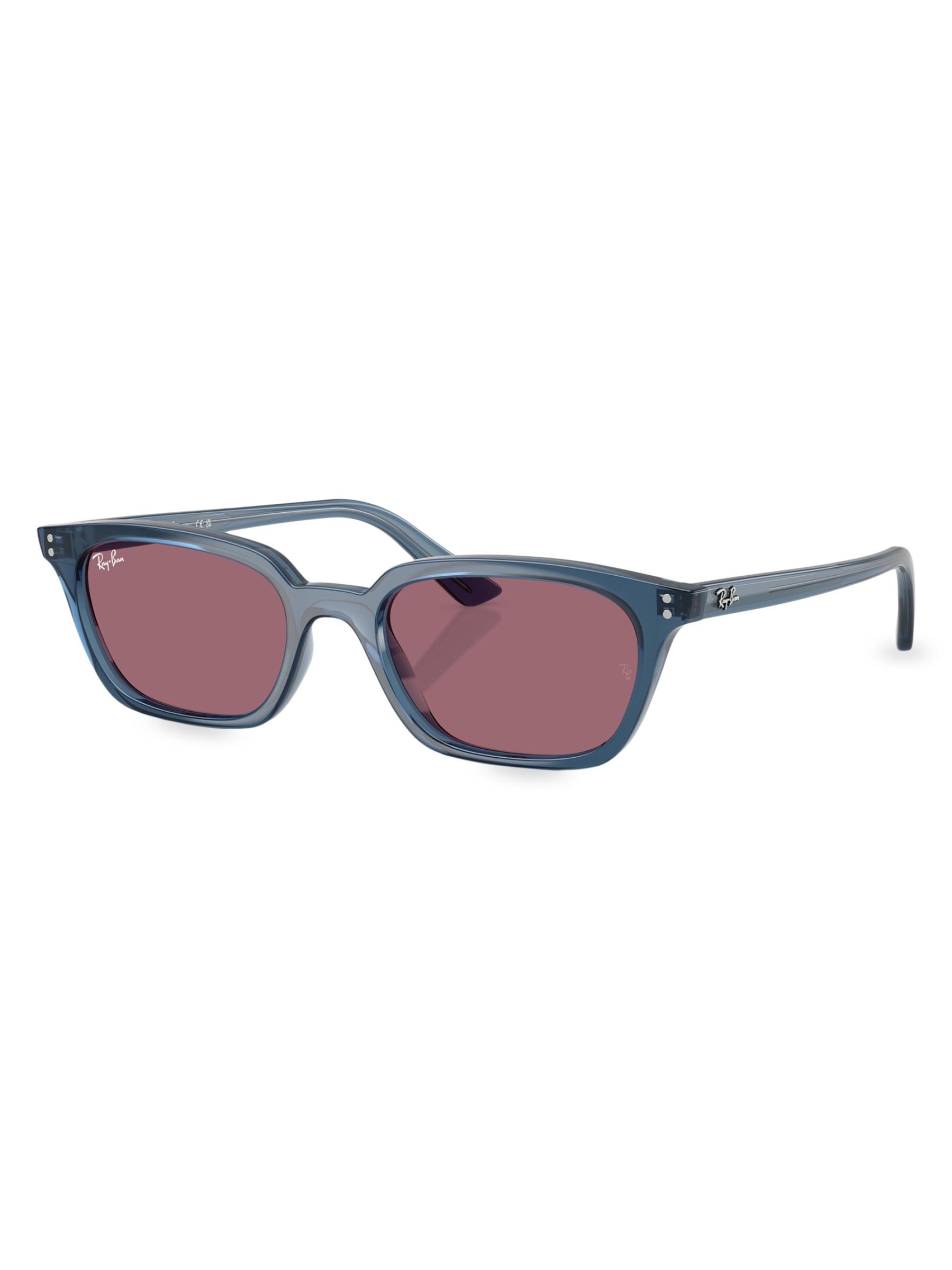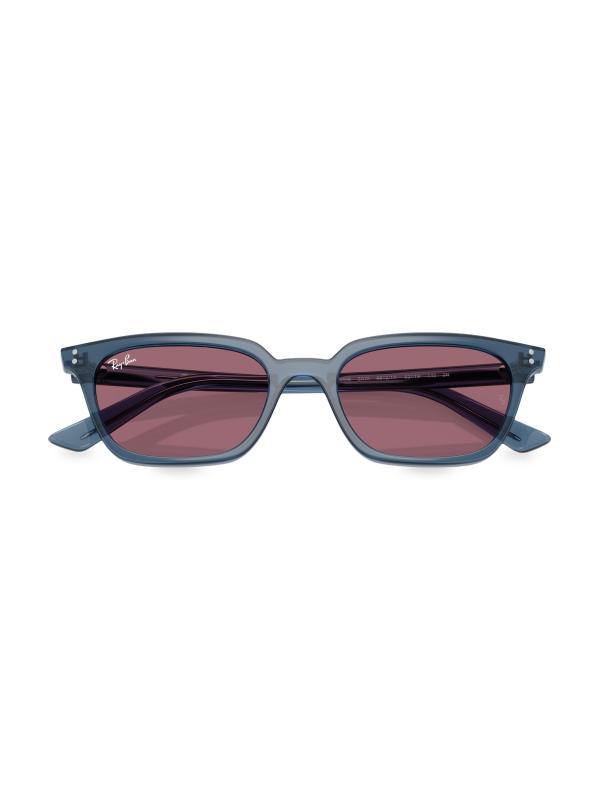 تم تصميم نظارات Ray-Ban 0RB4456 Zaya Pillow بشكل مربع وعدسات صلبة واقية من الأشعة فوق البنفسجية وشعار العلامة التجارية على المعابد.