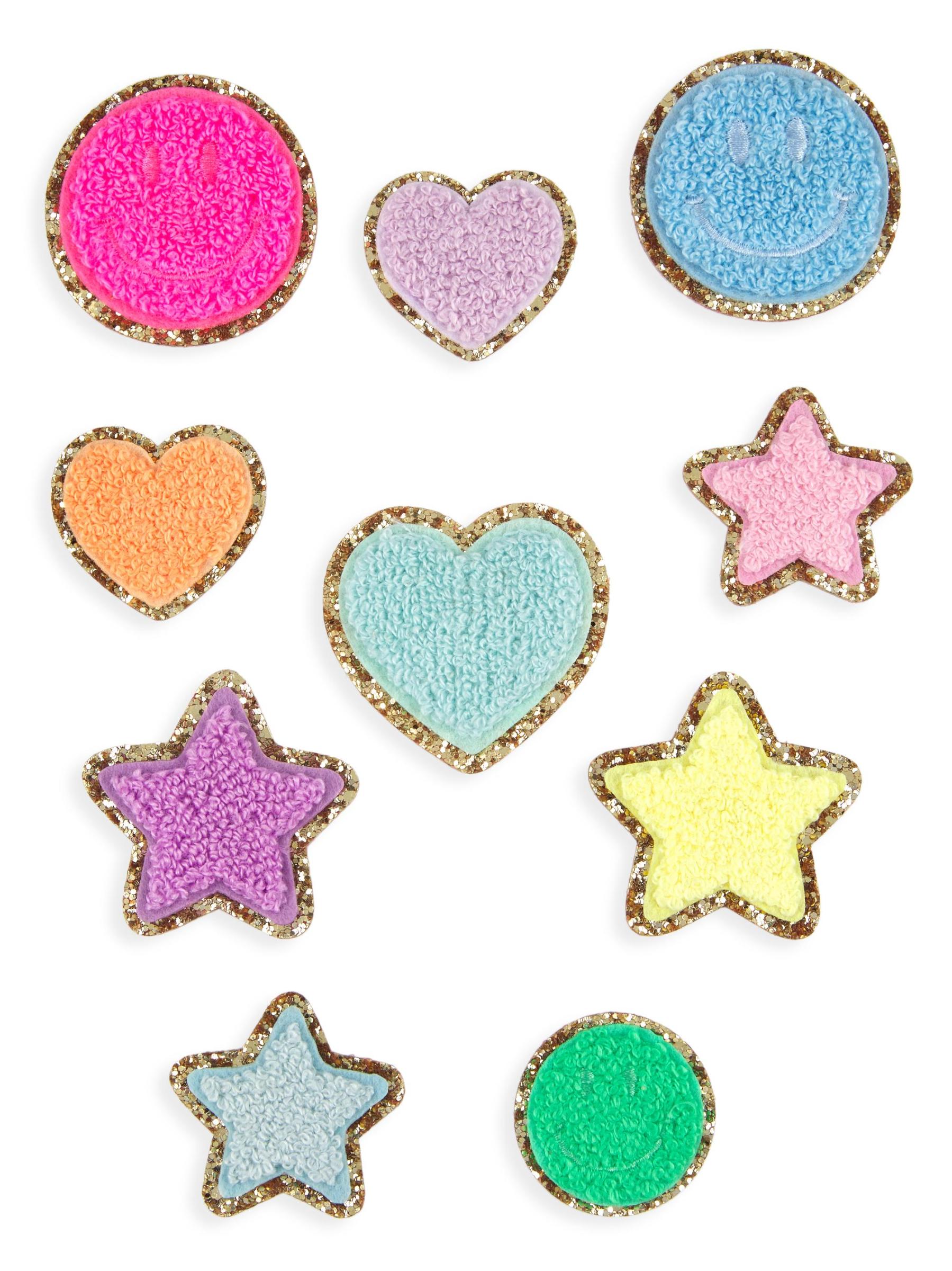 تتميز رقع الأيقونات اللامعة من Stoney Clover Lane بزخرفة مصنوعة من قماش الشنيل مع لمسات لامعة.مجموعة من 10 ظهر لاصق بوليستر مستوردة