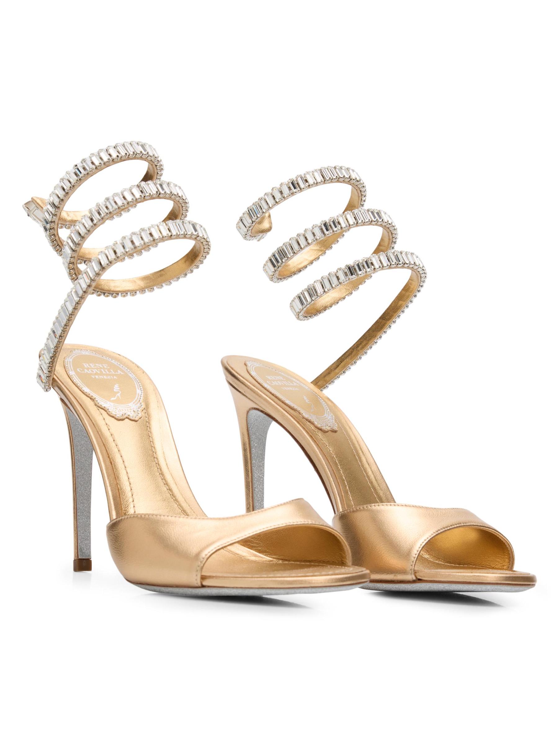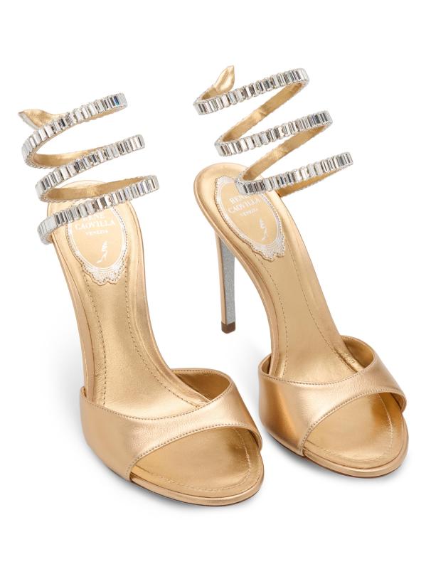 هذا الصندل من Rene Caovilla، المصنوع من الجلد، يتميز بغطاء كاحل مزين بالكريستال اللامع. تم وضع هذا الزوج فوق كعب ستيليتو مقاس 110 مم.