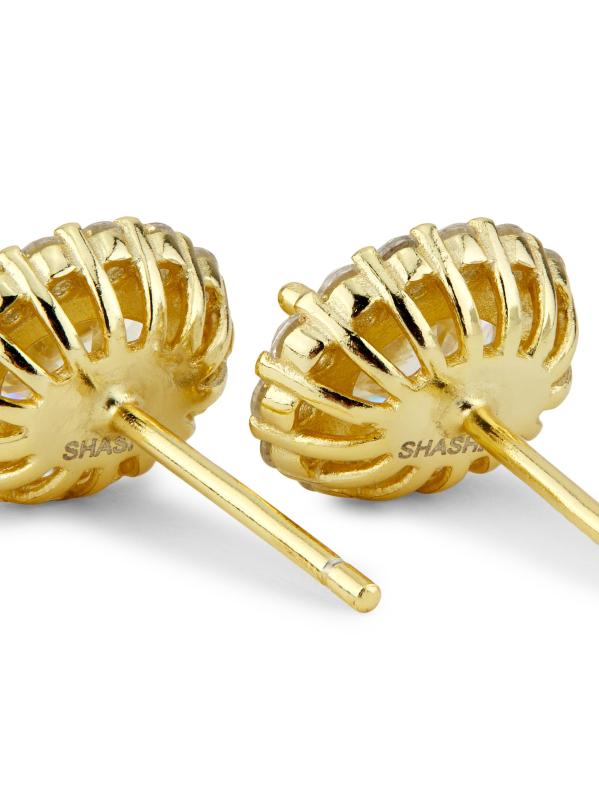 تتألق أقراط Shashi البراقة ذات اللون الذهبي المرصّع على شكل هالة مع الزركونيا المكعبة البيضاوية والمستديرة.