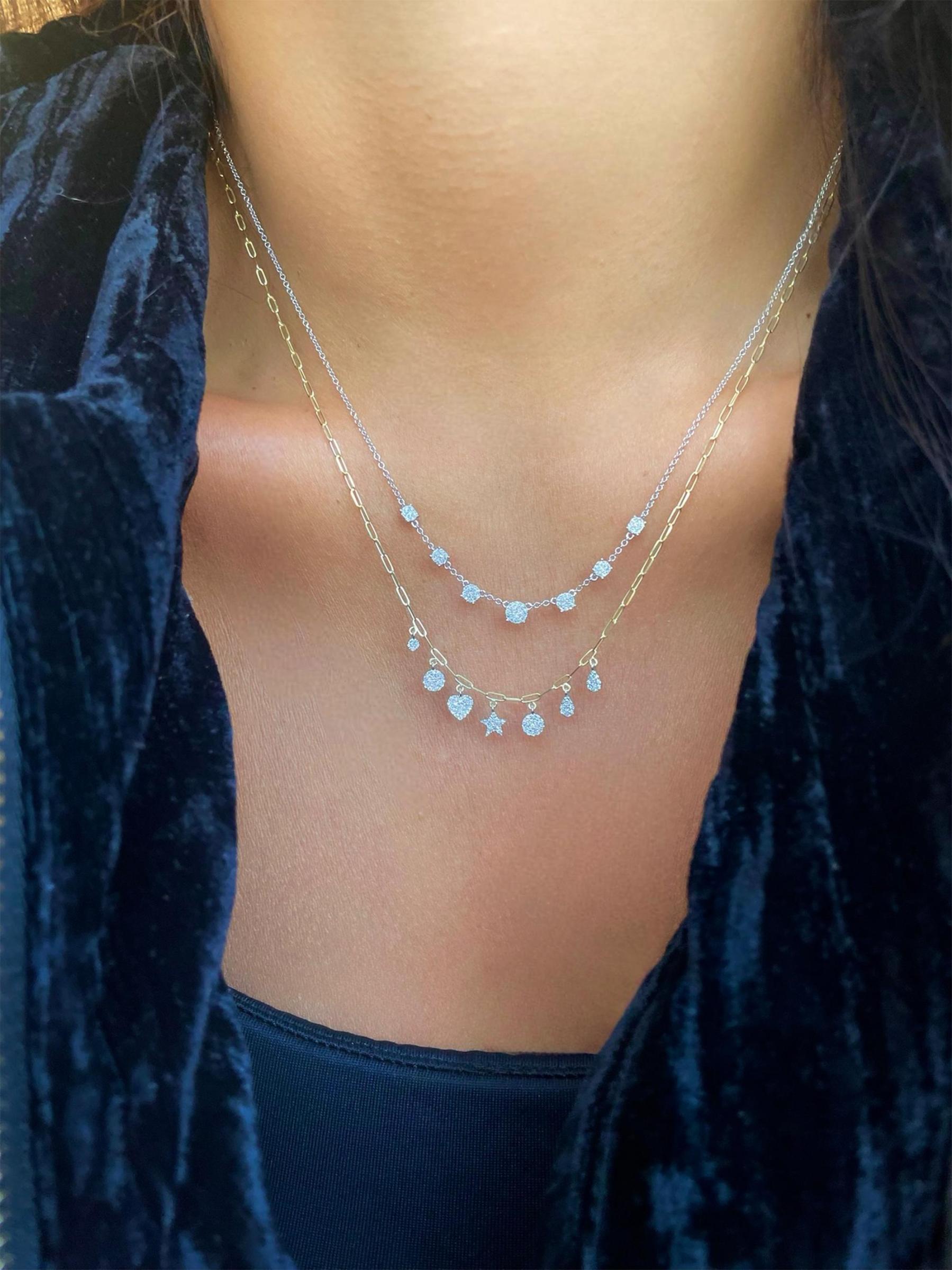 تتميز قلادة Meira T المصنوعة من الذهب الأبيض عيار 14 قيراطًا بمجموعات من الماس اللامع.