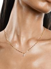 قلادة «لانا» المصنوعة من الذهب الأصفر عيار 14 قيراطًا تُثبت قلادة في المنتصف مرصّعة بثلاث ماسات مستديرة متدرّجة.