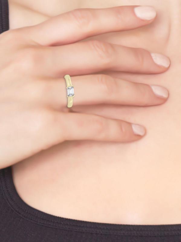 صُنع خاتم ناس العصري والخالد من الذهب الأصفر المصقول عيار 14 قيراطًا، ويتميز بماسة متألقة مقطوعة بالزمرد ترتكز على أجواء التوتر بين الشرق والغرب.ألماس مزروع في المختبر، 0.50 tcw درجة لون الماس: F-G درجة وضوح الماس: SI ذهب أصفر عيار 14 مستوردة