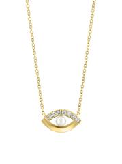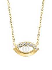 قلادة قلادة عين الشر من الماس عيار 14 قيراطًا، ولؤلؤ المياه العذبة عيار 3 مم، و0.07 TCW من الماس على شكل عين الشر