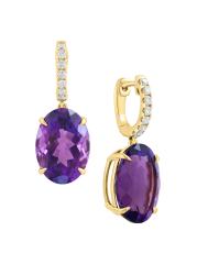 أقراط متدلية من الذهب الأصفر عيار 14 قيراط والجمشت والألماس عيار 0.24 TCW
