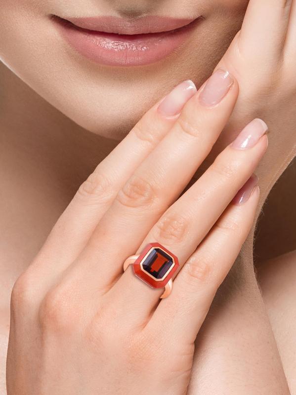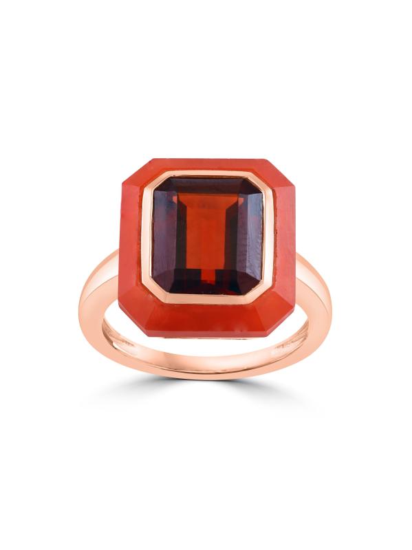خاتم من الذهب الأصفر والأحجار الكريمة عيار 14 قيراط
