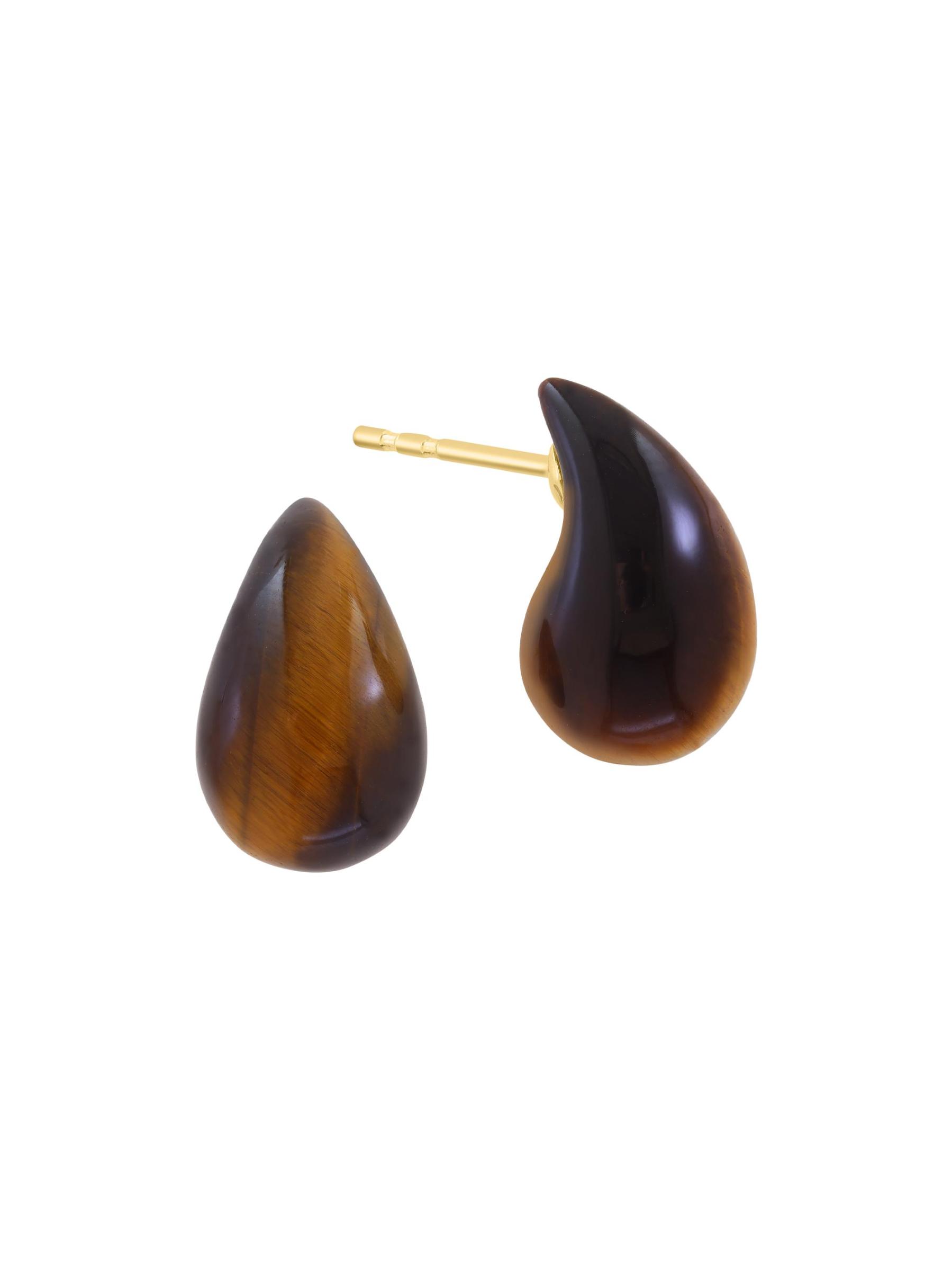 أقراط مرصعة على شكل عين النمر من الذهب الأصفر عيار 14 قيراط