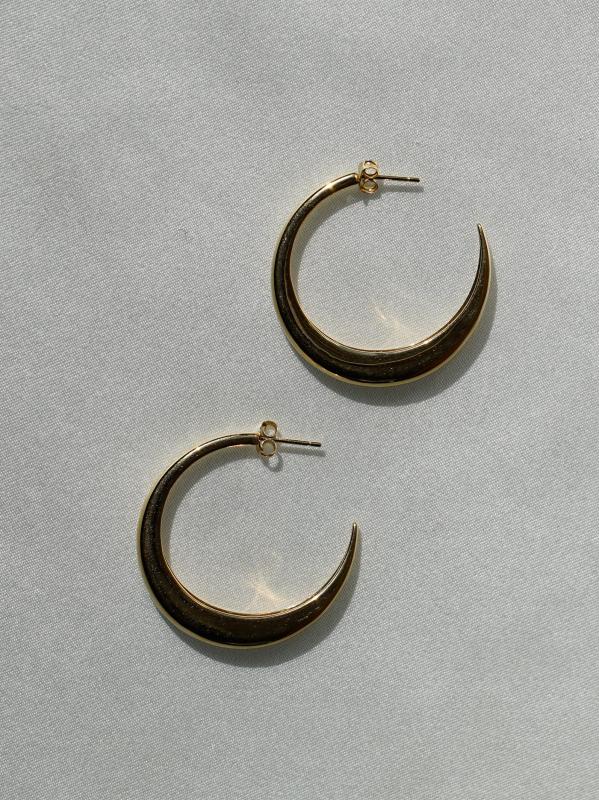 صُنعت أقراط Otiumberg ذات الطوق المتدرج يدويًا من فيرميل الذهب الأصفر عيار 14 قيراطًا. تأسست علامة المجوهرات في عام 2016 على يد الأختين روزانا وكريستي وولينبرغ، وتشتهر بقطعها العصرية الراقية المثالية للارتداء اليومي.