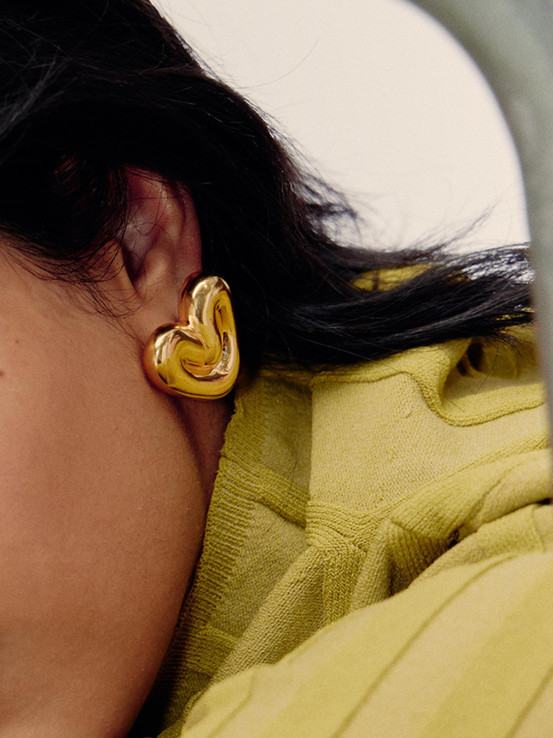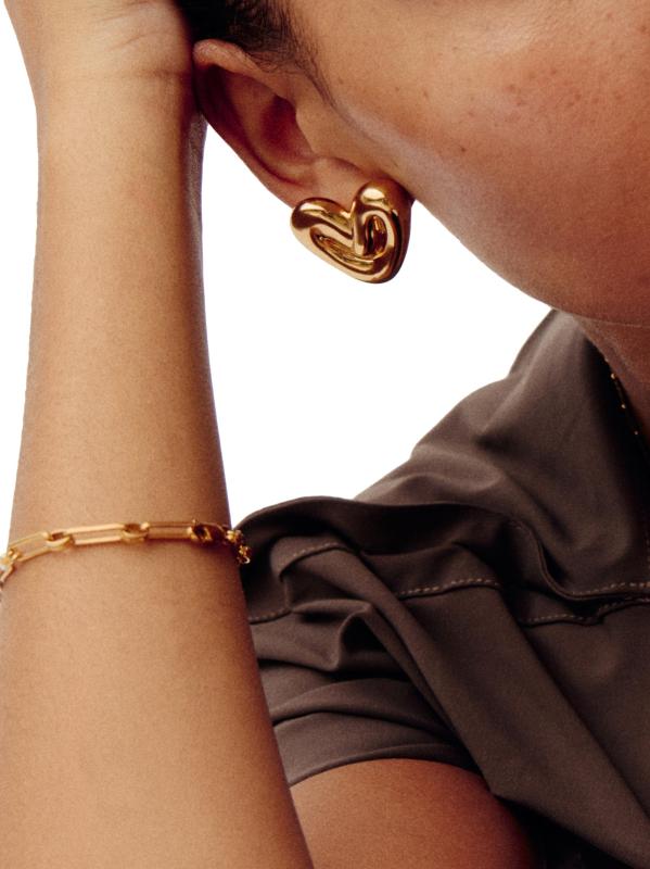 تتميّز أقراط Missoma المرصعة بزخارف القلب المنتفخة الساحرة، وهي مصنوعة من النحاس المصقول المطلي بالذهب عيار 18 قيراطًا.