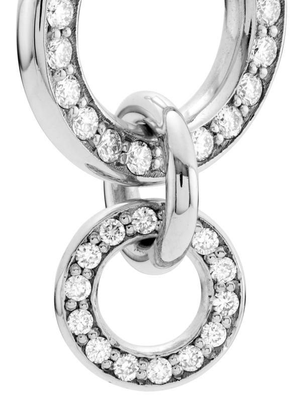 من مجموعة الأقراط. أقراط متدلية من الذهب الأبيض عيار 18 قيراطًا مرصعة بالألماس الأبيض المستدير على شكل قنوات.