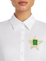 يتألق بروش النجمة الخاص بـ Kenneth Jay Lane المصنوع من المعدن المطلي بالذهب عيار 22 قيراطًا مع الزمرد الزجاجي النابض بالحياة. يجسد هذا الإكسسوار اللافت للنظر الجمالية الجريئة والرائعة لعلامة المجوهرات العصرية.
