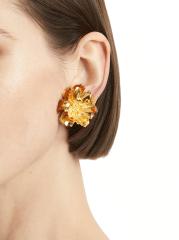 صُنعت هذه الأقراط المرصعة من Oscar de la Renta، المنحوتة بشكل معقد على شكل الفاوانيا، من النحاس اللامع المطلي بالذهب عيار 24 قيراطًا.