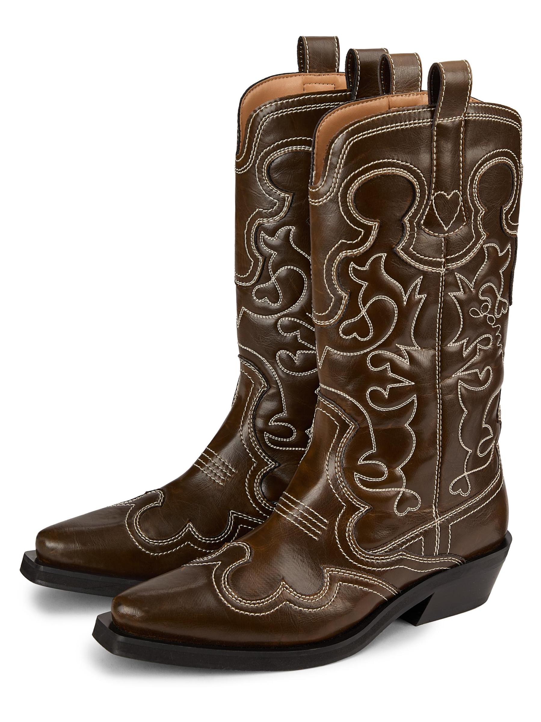هذا الحذاء ذو العمود المتوسط من Ganni مصنوع من الجلد الصناعي المطرز ومصمم بكعب مائل 40 مم.