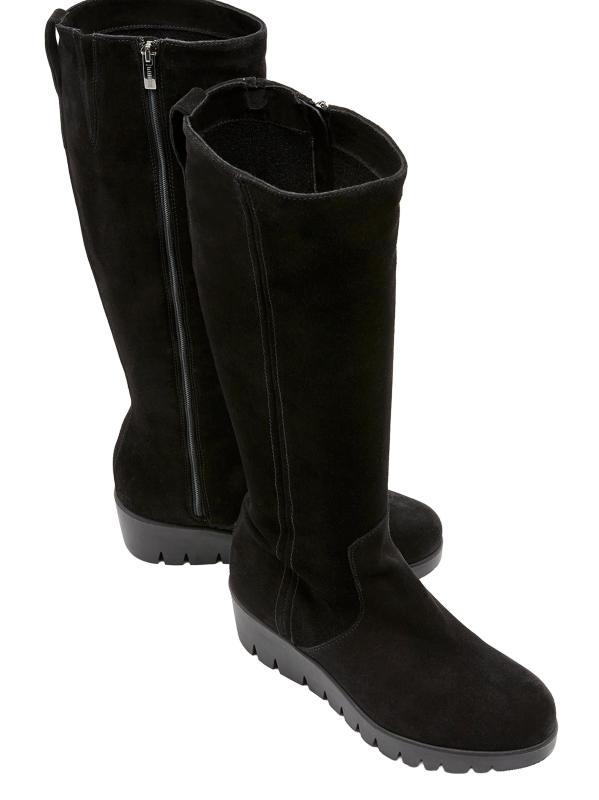 صُمم هذا الحذاء الذي يصل حتى الركبة من La Canadienne من الجلد المدبوغ بمقدمة مستديرة وسحّاب جانبي ونعل إسفين مطاطي. يتميز هذا الزوج بتقنية City Dry™ الخاصة بالعلامة التجارية للحماية من الماء.