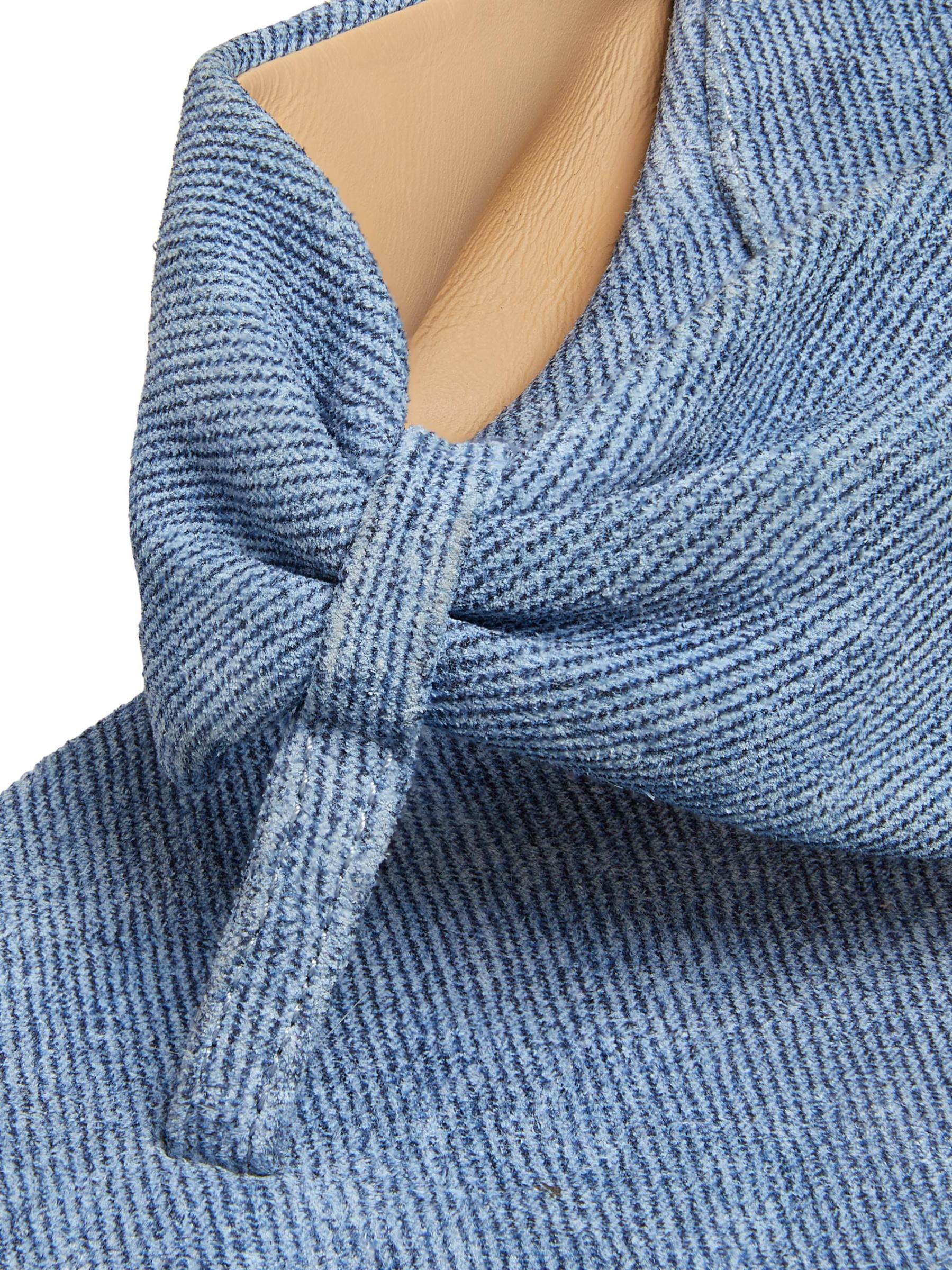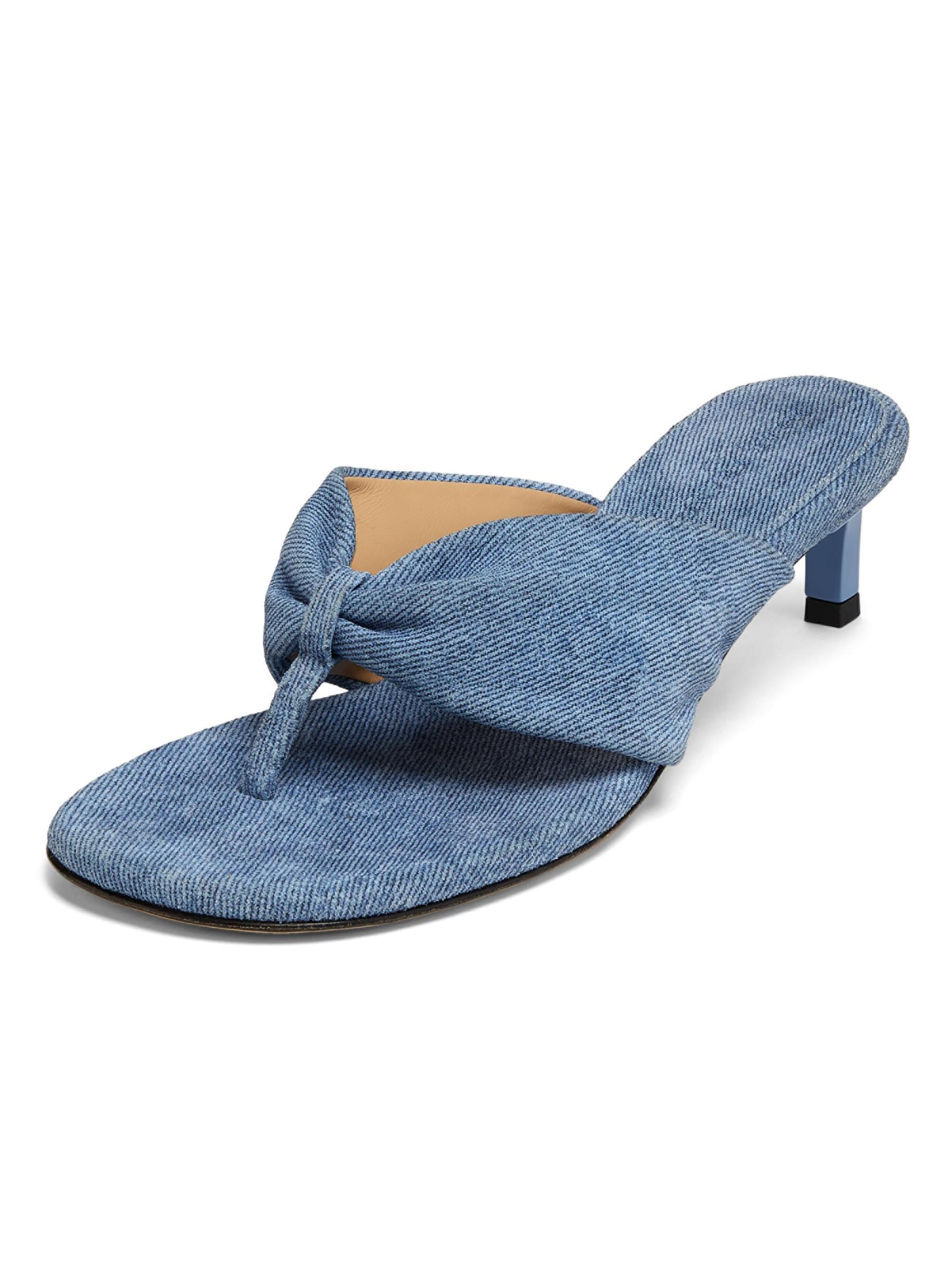 صُنع هذا الصندل من Dear Frances في إيطاليا من الدنيم ويتميز بكعب 45 مم ملفوف بالجلد.