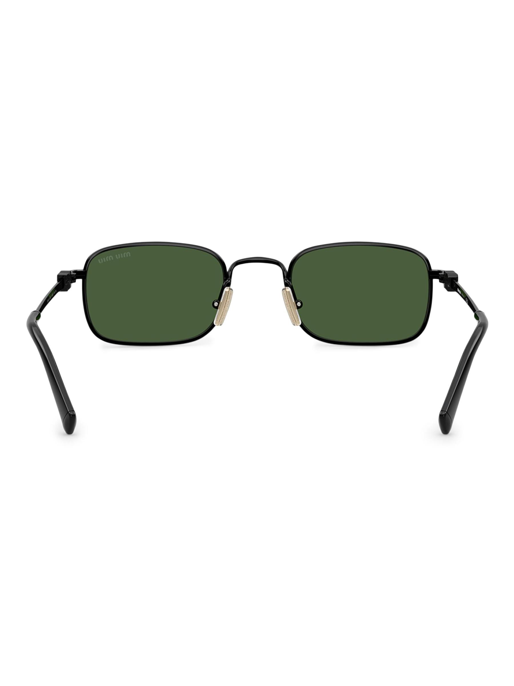 تم تصميم هذه النظارات الشمسية Miu Miu في شكل مستطيل وتتميز بأذرع رقيقة مدببة مع تفاصيل الشعار على العدسة.