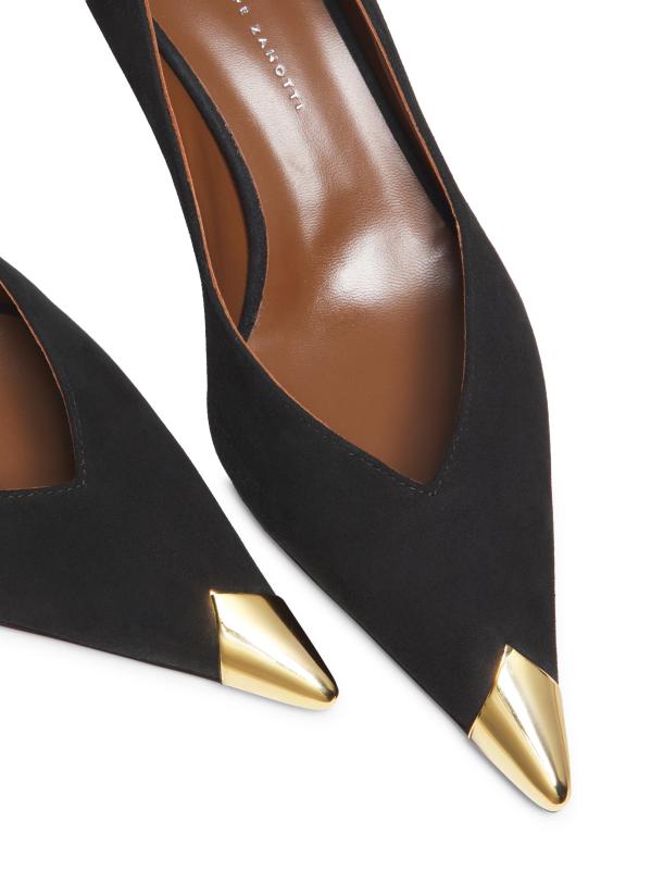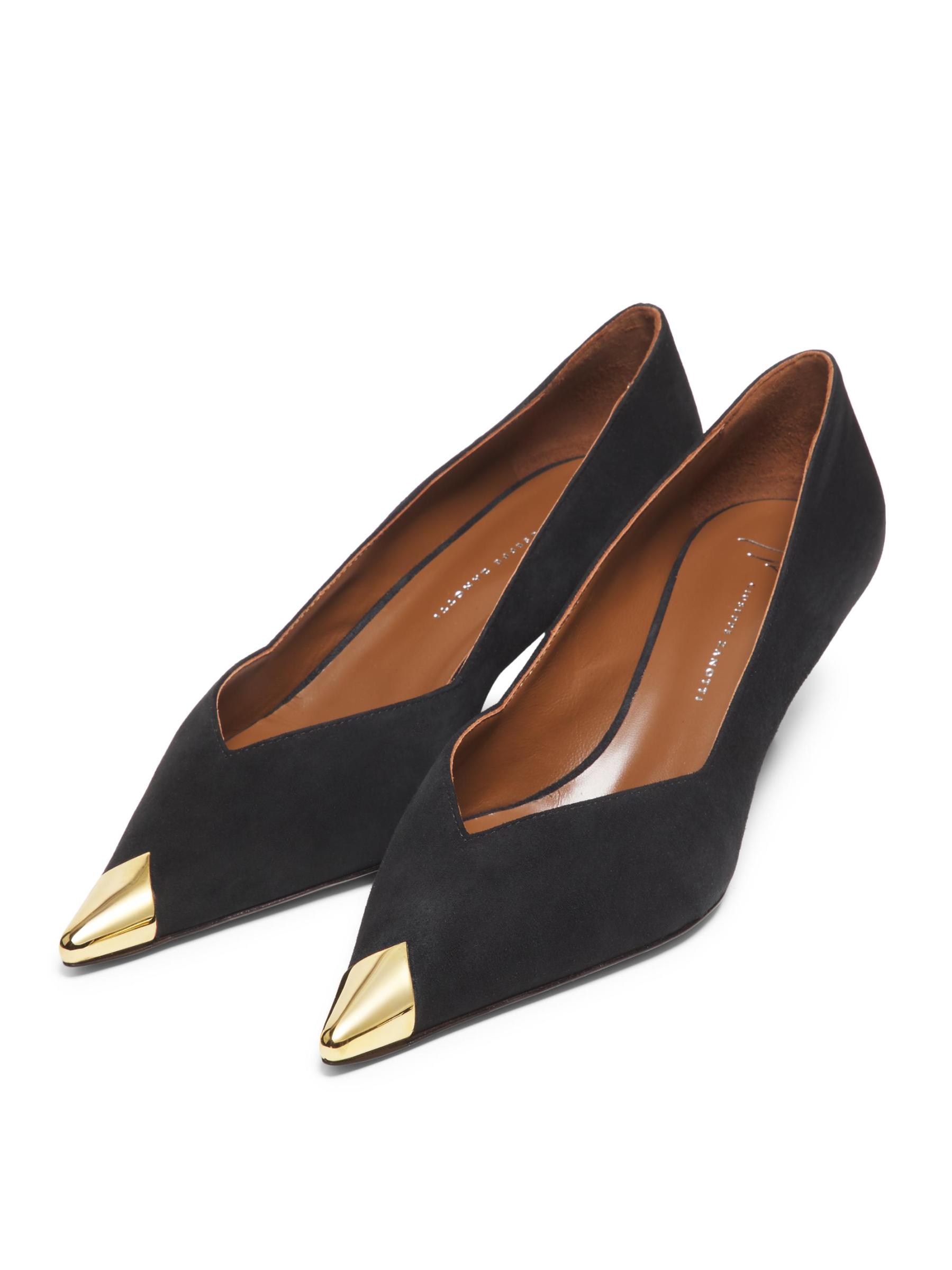 هذه الأحذية من Giuseppe Zanotti مصنوعة من الجلد المرن وتتميز بقبعة معدنية ذهبية اللون وكعب صغير بحجم 50 مم.