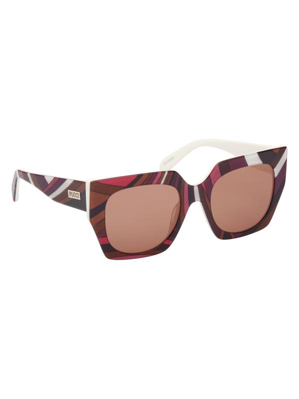 تتميز هذه النظارات الشمسية المربعة كبيرة الحجم من Pucci بنمط رسومي جريء.