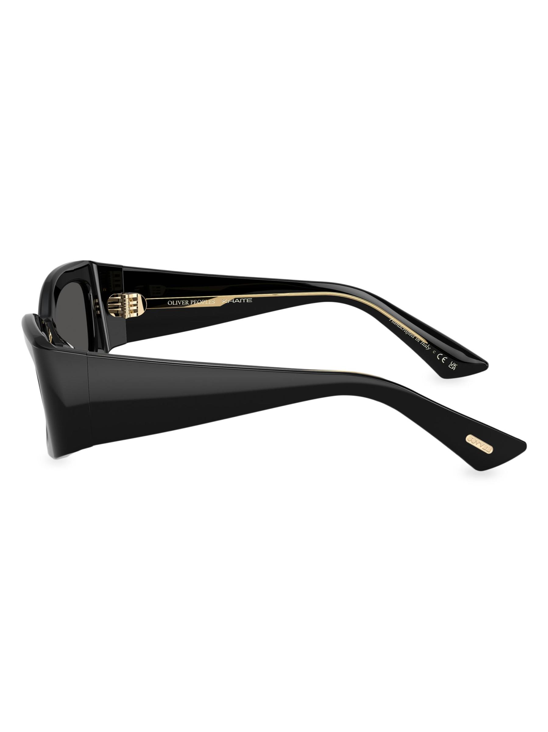 من التعاون بين شعوب خايتي وأوليفر. تتميز هذه النظارات الشمسية بتصميم مستطيل مع جسر على شكل سرج وتفاصيل معدنية راقية. تم تعزيز التصميم من خلال وسادات الأنف المستوحاة من الطراز القديم والشعارات المرصعة يدويًا، مما يعكس حصرية المجموعة.