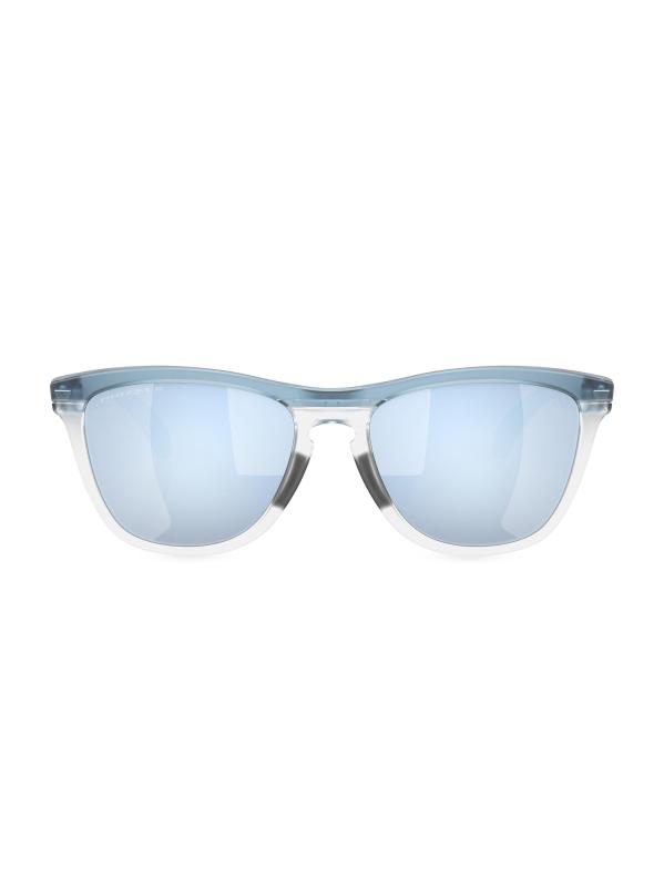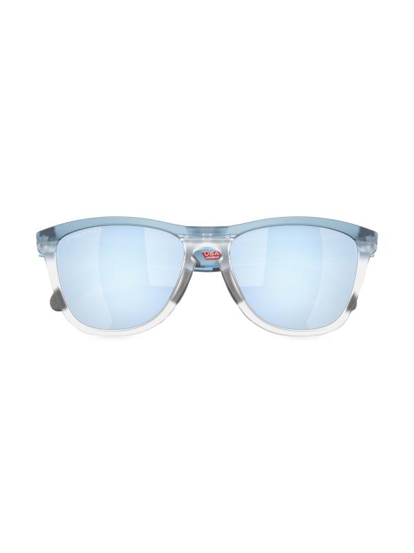 تم تصميم نظارات أوكلي الشمسية هذه بعدسات عاكسة نابضة بالحياة، وهي مزينة بشعارات منقوشة على الذراعين.
