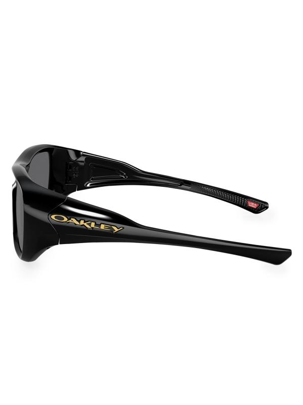 تم تصميم نظارات Oakley الشمسية هذه بشكل مستطيل وتتميز بتفاصيل حروف الشعار على الصدغين وأنف السرج.