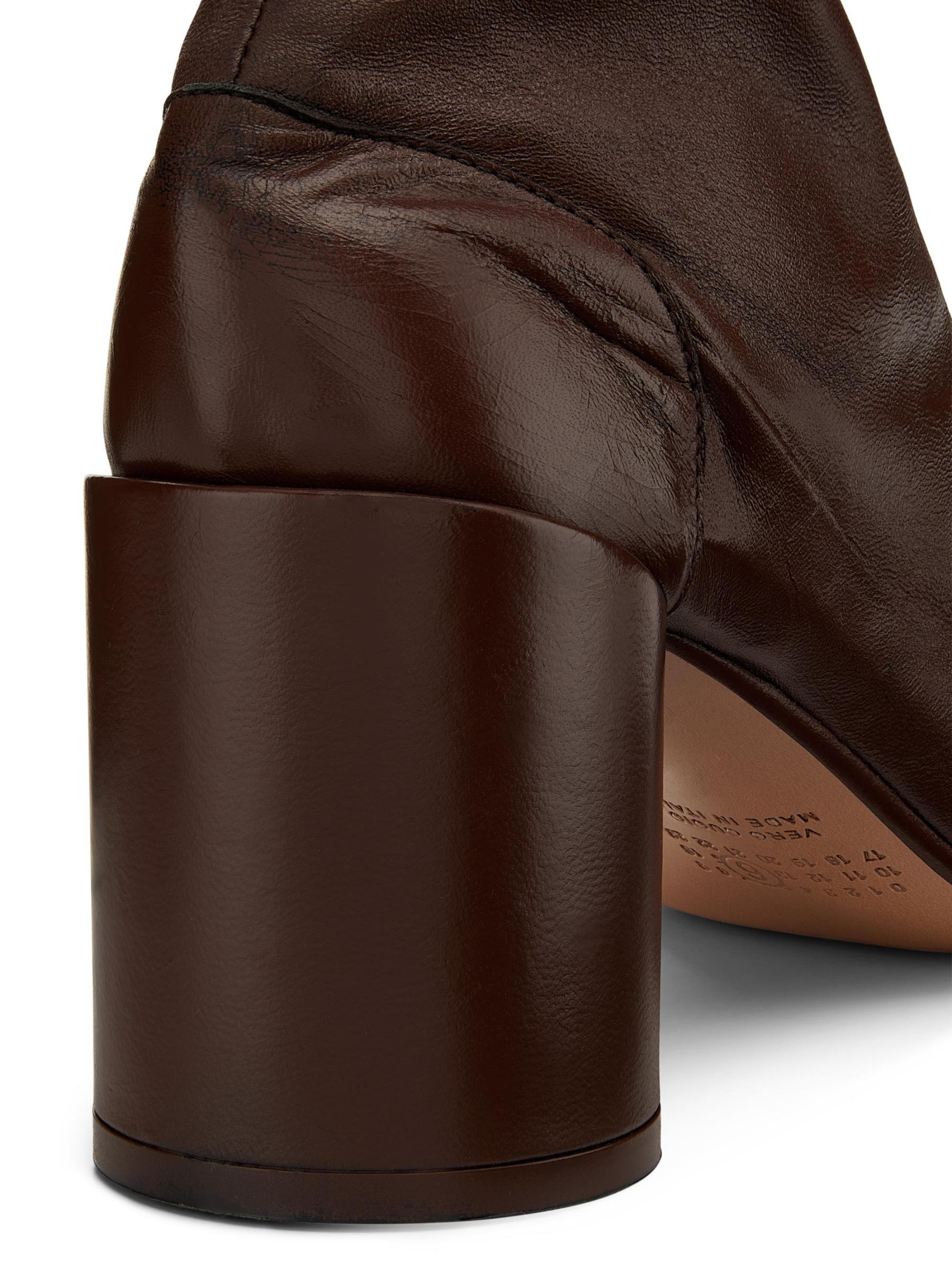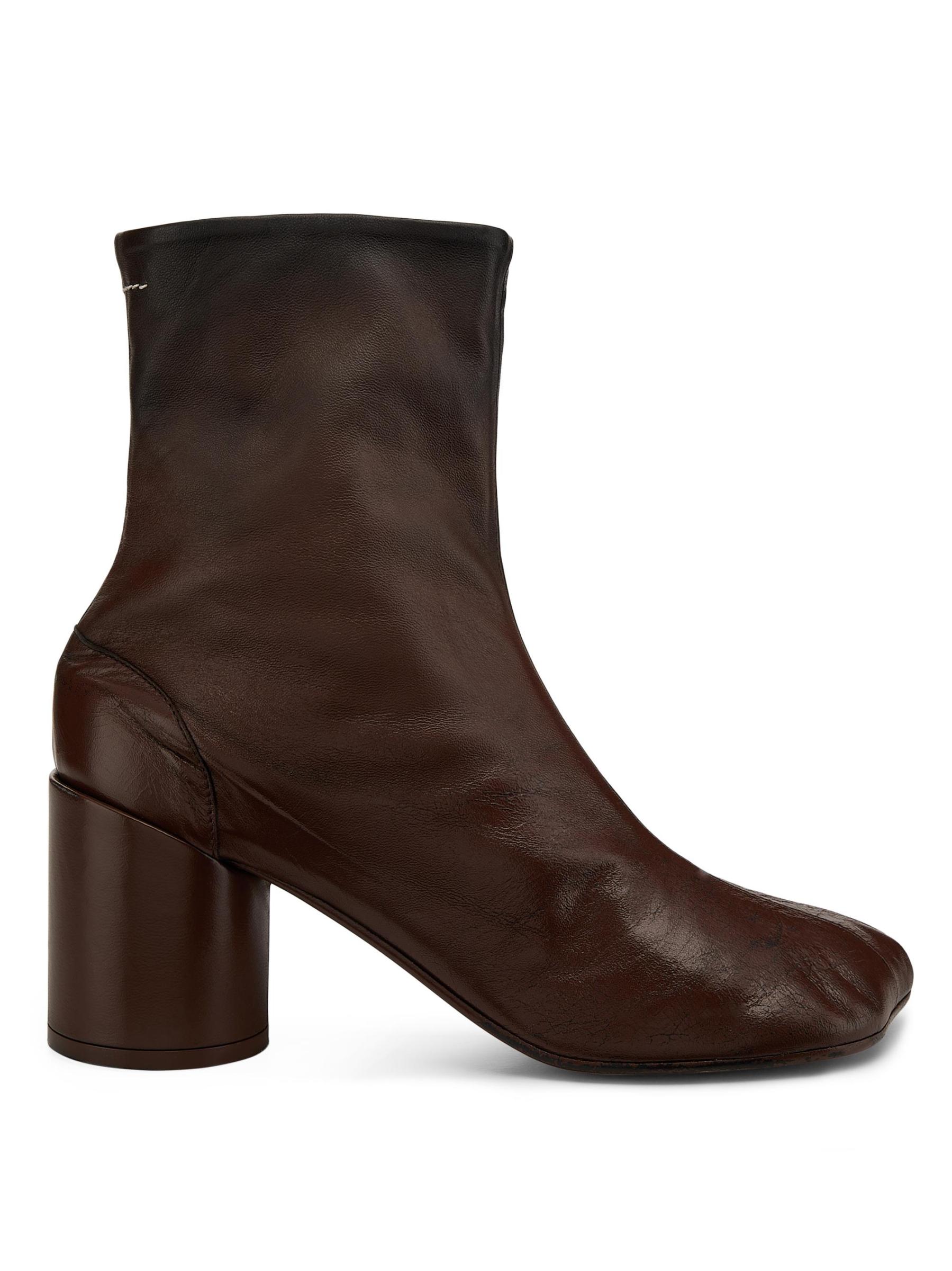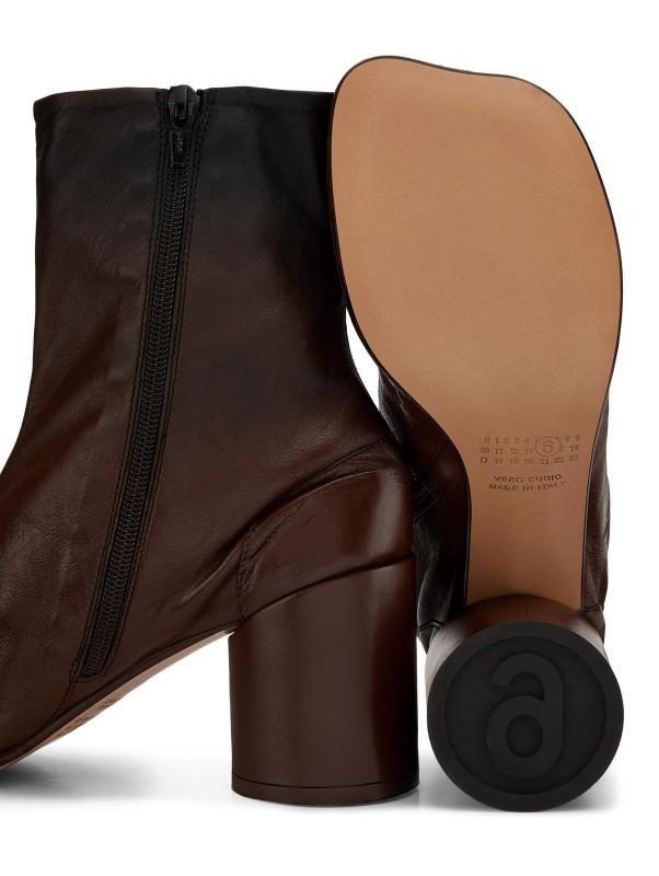 تم تصميم أحذية الكاحل هذه من MM6 Maison Margiela، المصنوعة من الجلد المرن، بمقدمة مربعة وتأثير الطلاء بالرش وكعب أسطواني 70 مم.