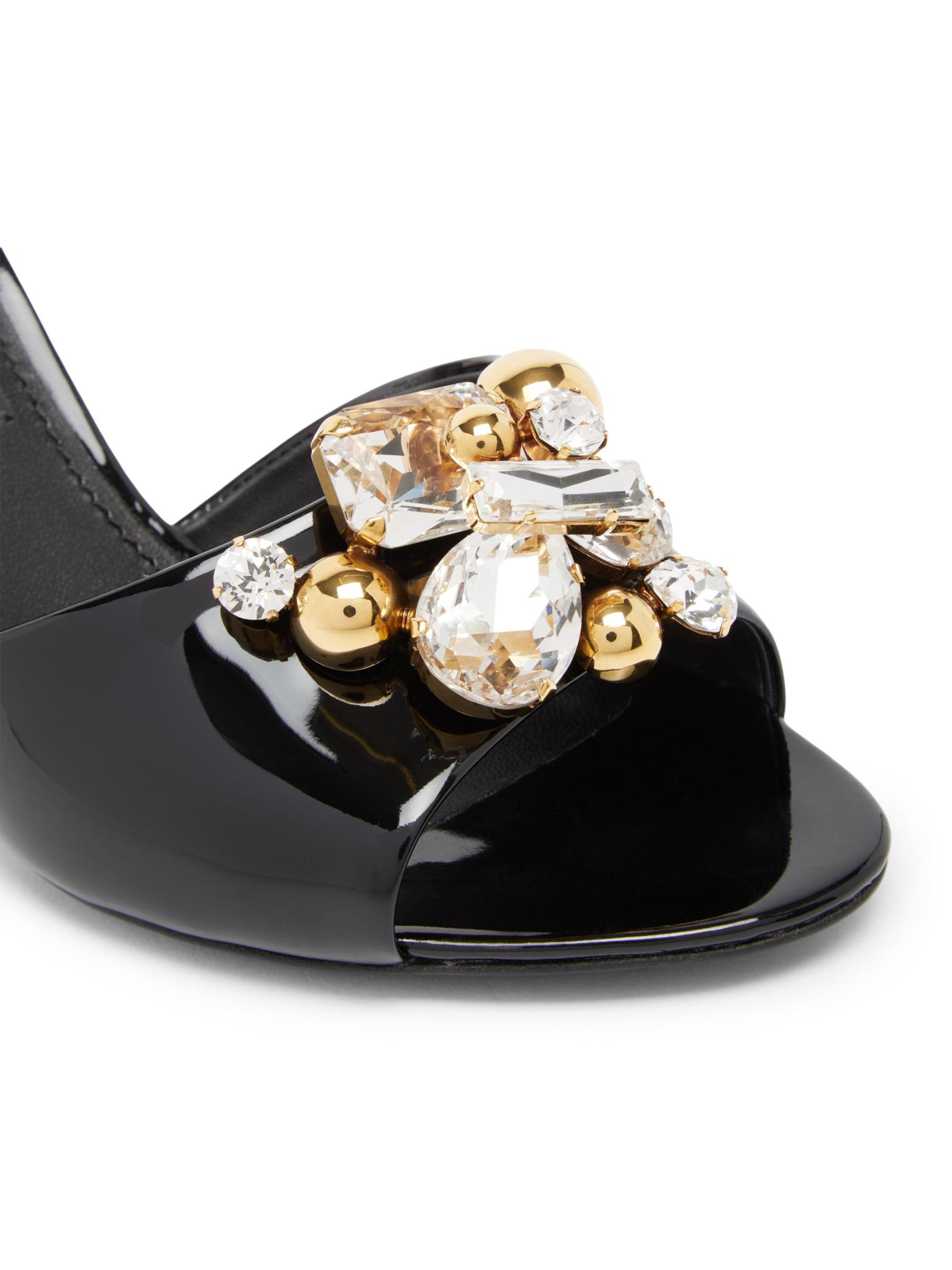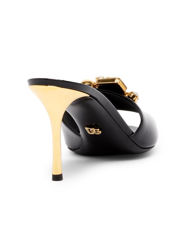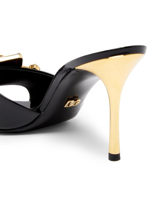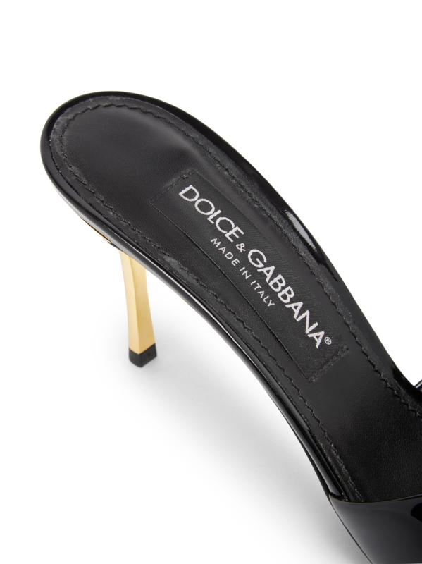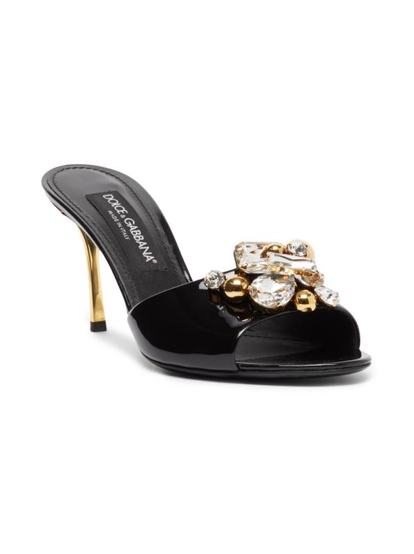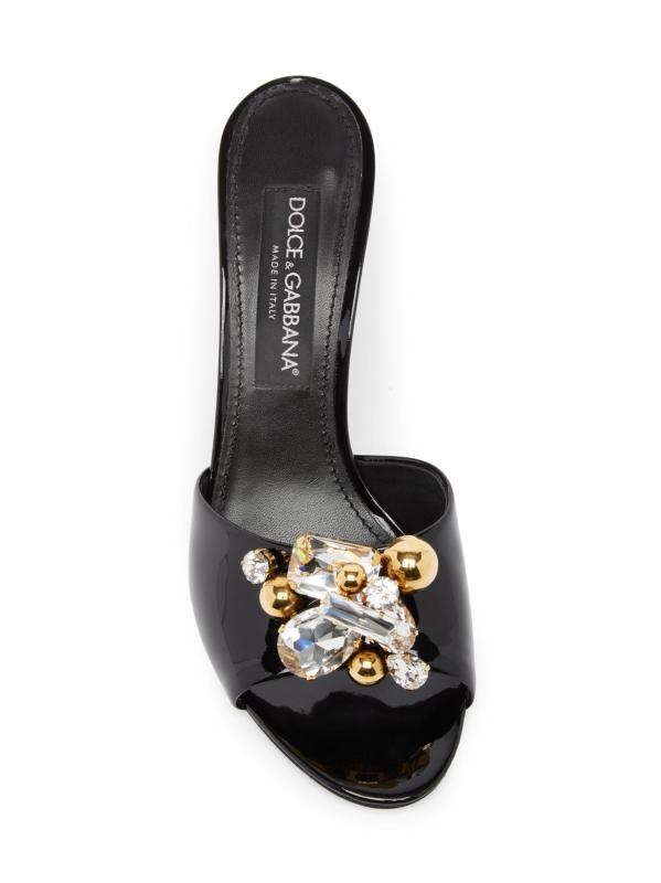 هذه البغال من Dolce&Gabbana، المصنوعة من الجلد اللامع اللامع، مزينة بالكريستال اللامع ومجموعة الجواهر المعدنية. تم وضع هذا الزوج فوق كعب خنجر مقاس 90 مم.