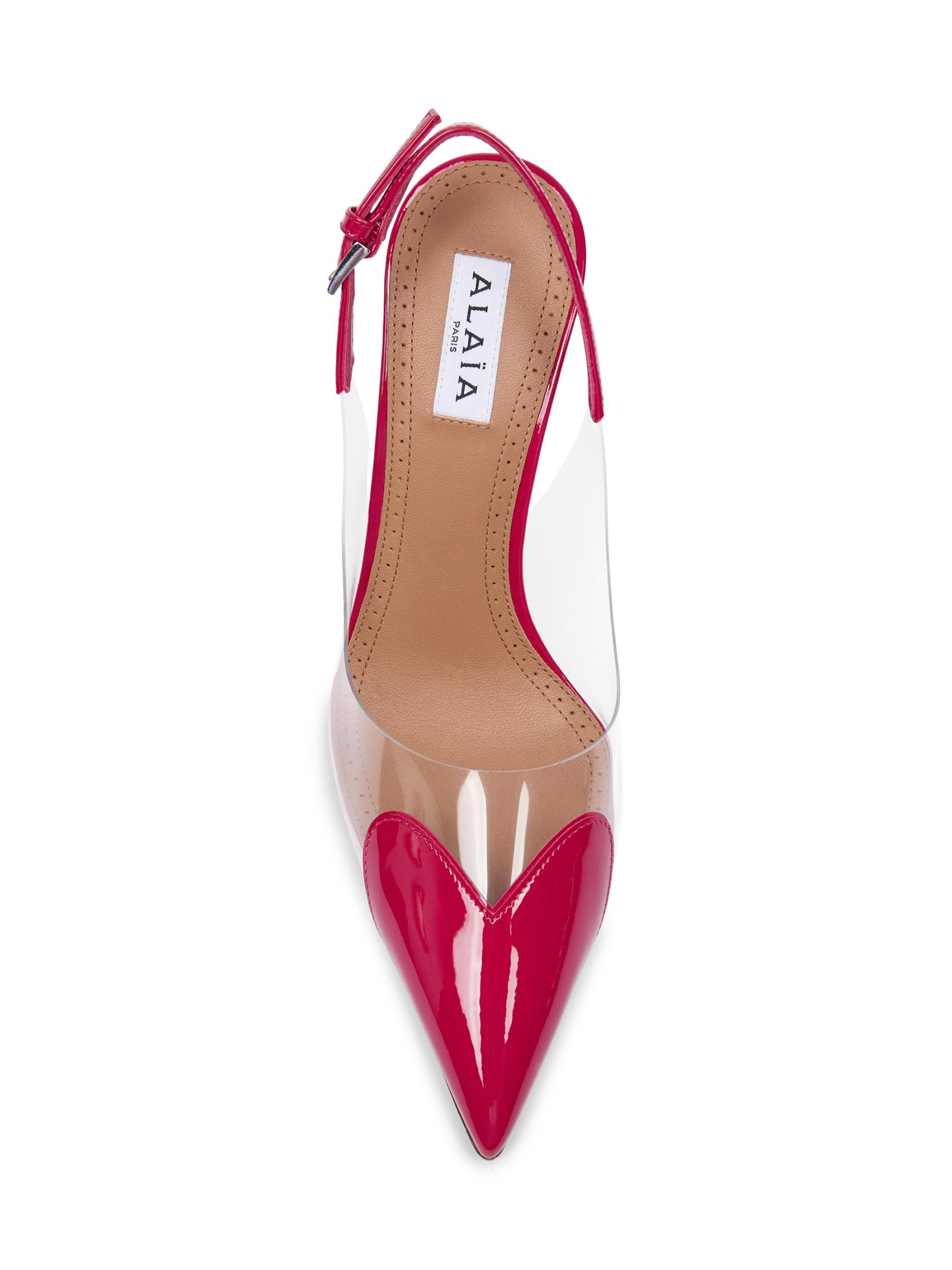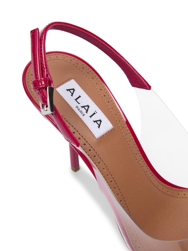 تتميّز مضخات Alaïa مقاس 90 مم المصنوعة في إيطاليا بطبقة علوية من البولي فينيل كلوريد والجلد اللامع مع تفاصيل على شكل قلب عند صندوق الأصابع. النعل عبارة عن مزيج من الجلد والمطاط، مما يضمن لمسة نهائية قوية ومتينة.