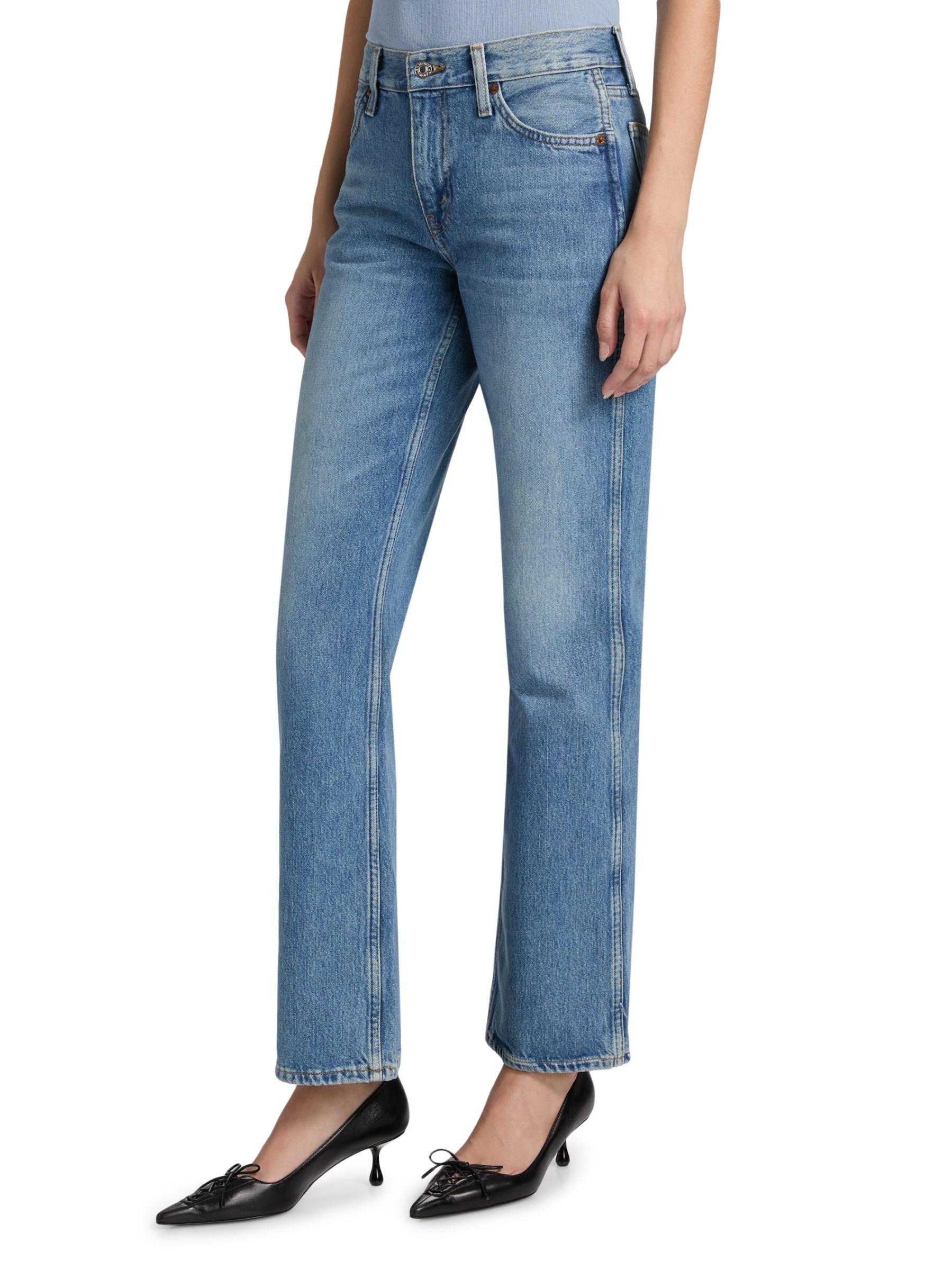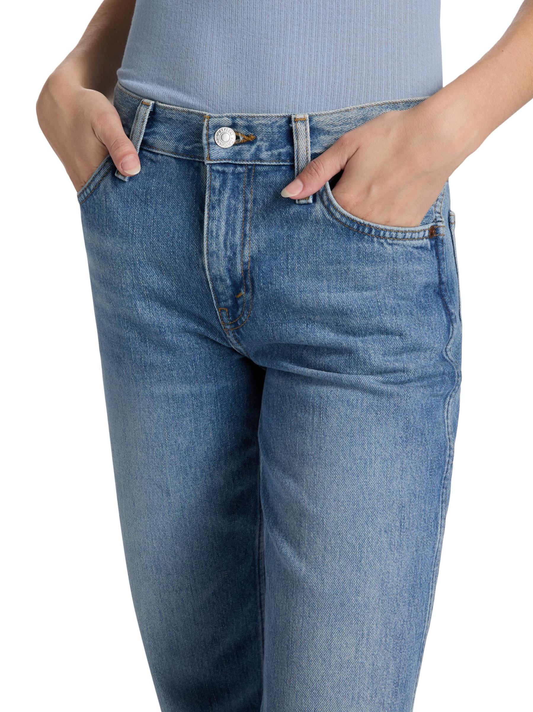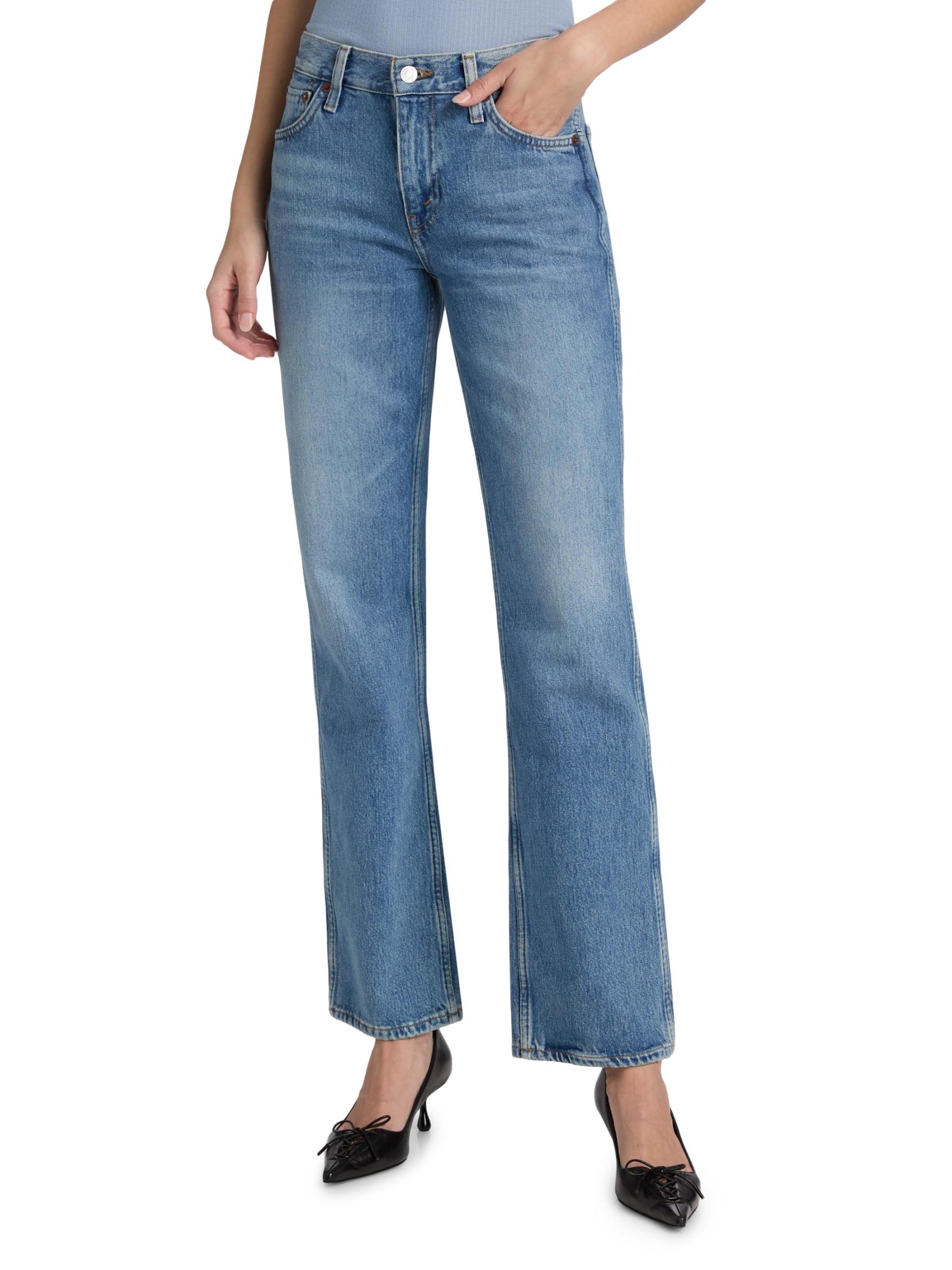 هذا الجينز من التسعينيات من Re/Done مصنوع من الدنيم القطني الصلب في شكل فضفاض مستقيم الساق. يتميز هذا الحذاء ذو الارتفاع المتوسط بتصميم كلاسيكي بخمسة جيوب.