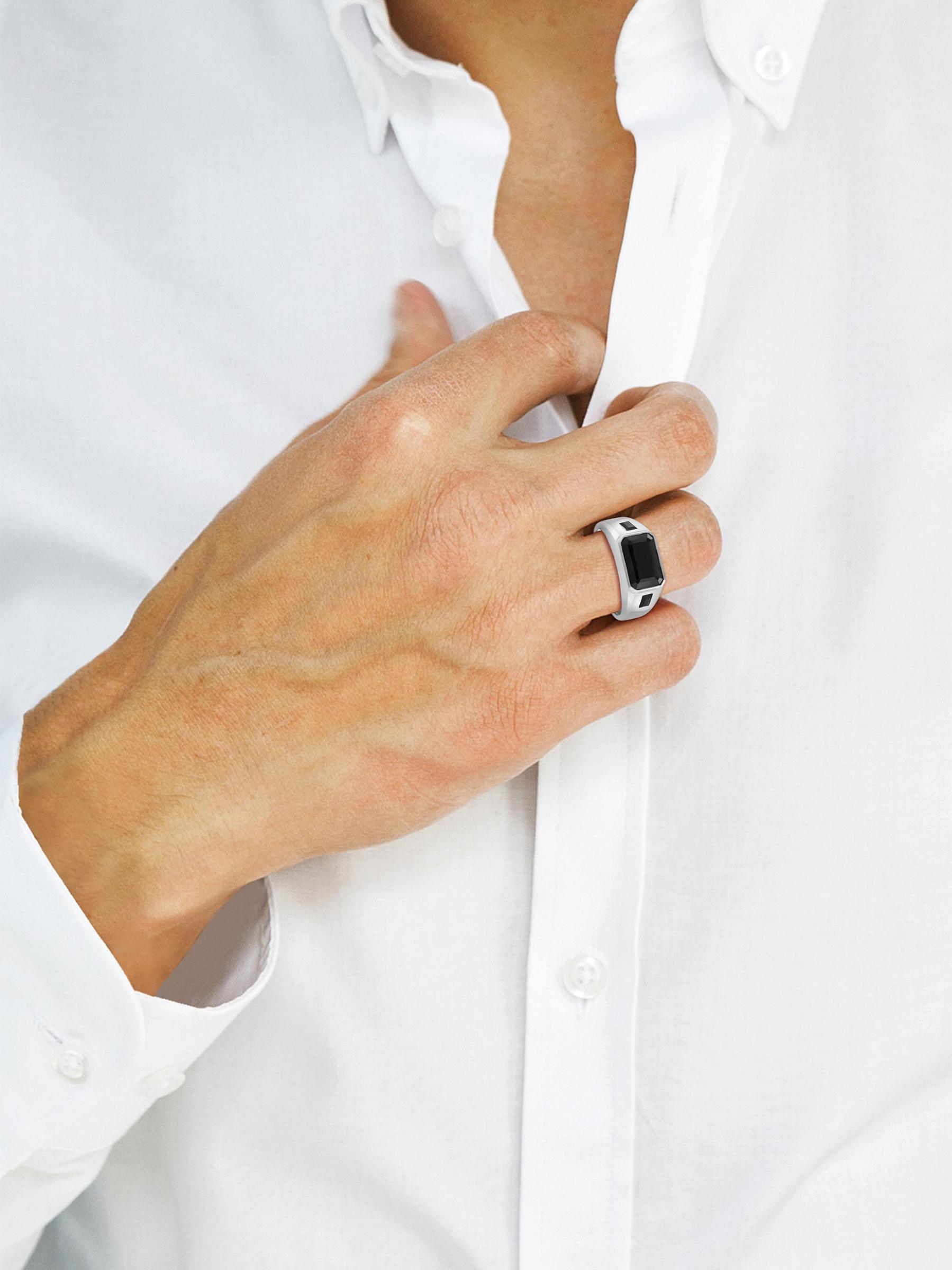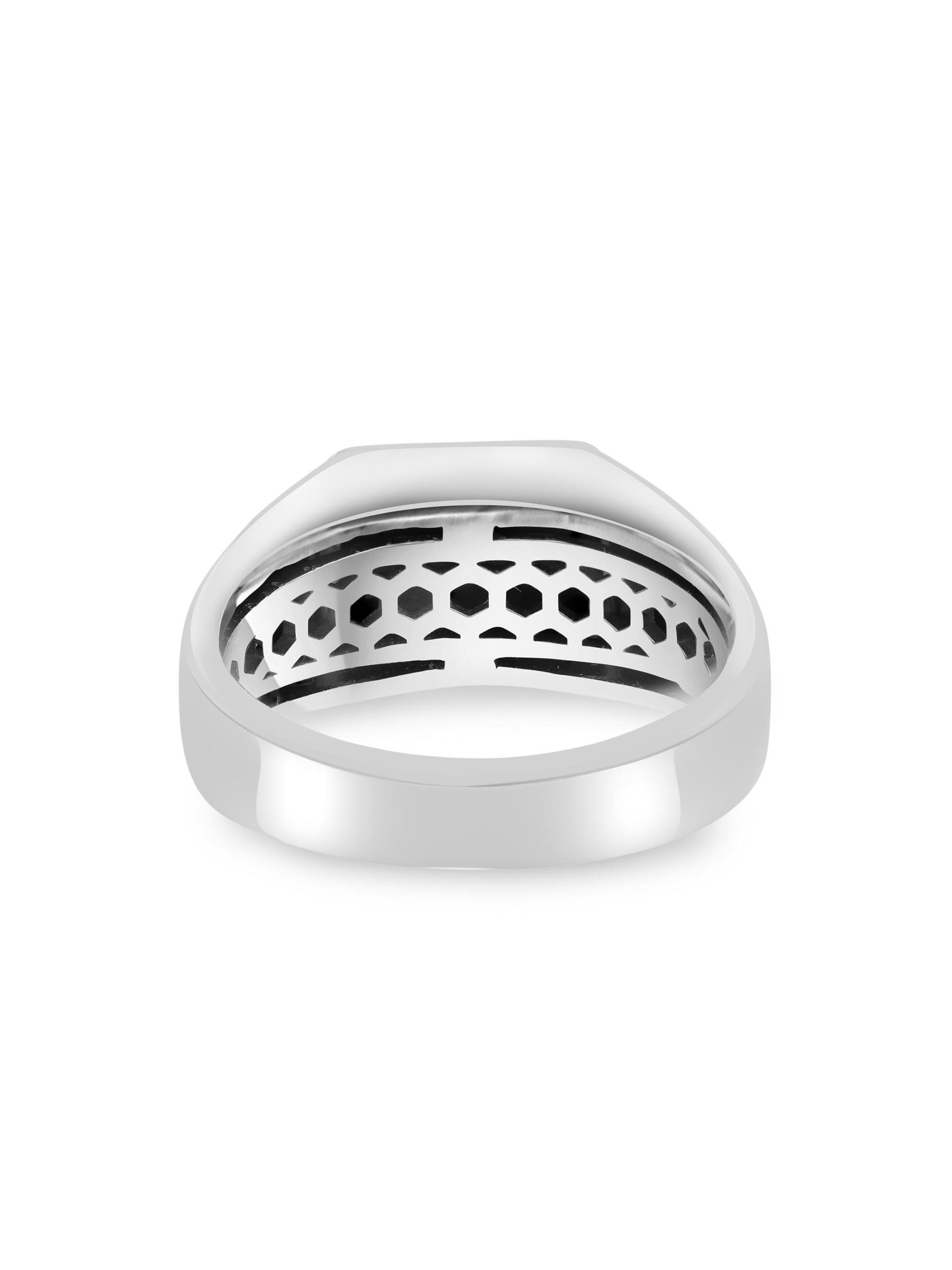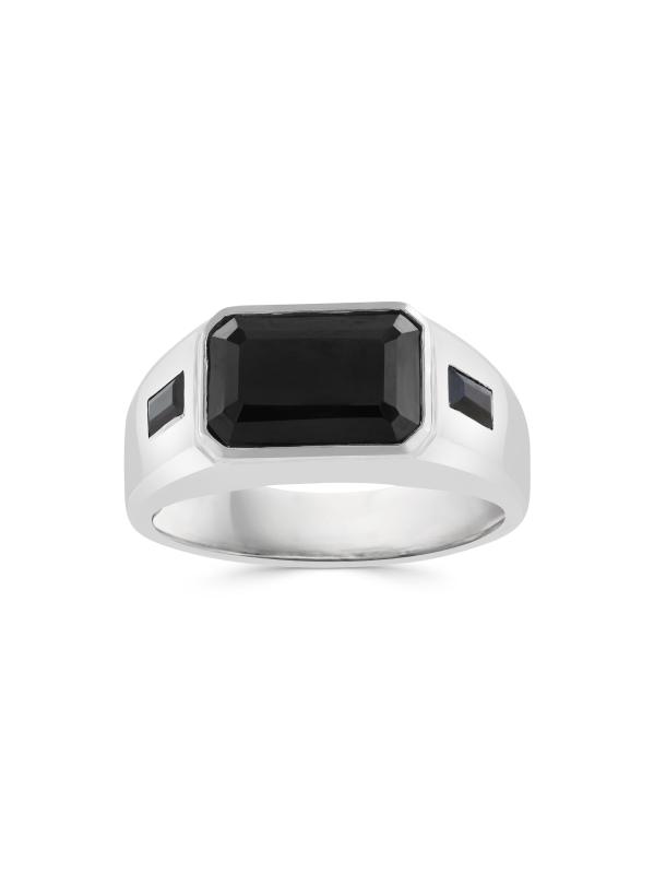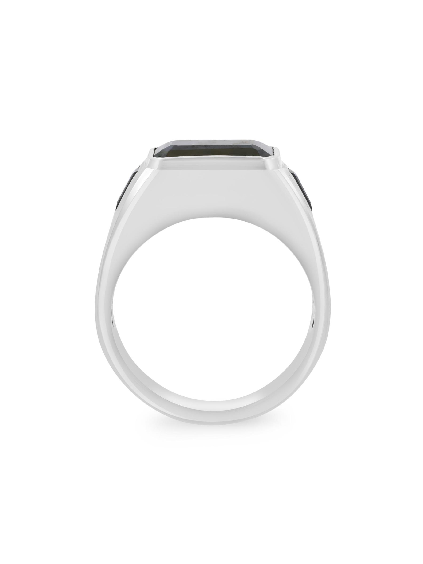 صُنع هذا الخاتم من مجموعة ساكس فيفث أفينيو من الفضة الإسترلينية عيار 925، وهو مزين بالإسبنيل الأسود في صورة مربعة.