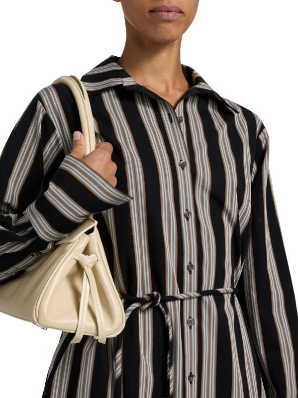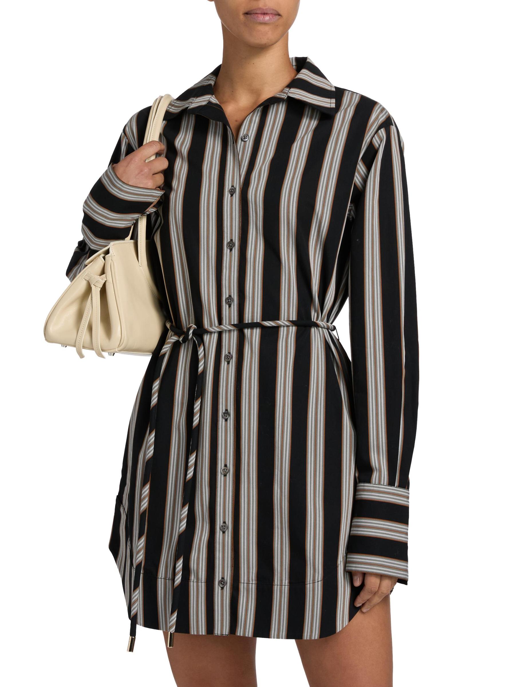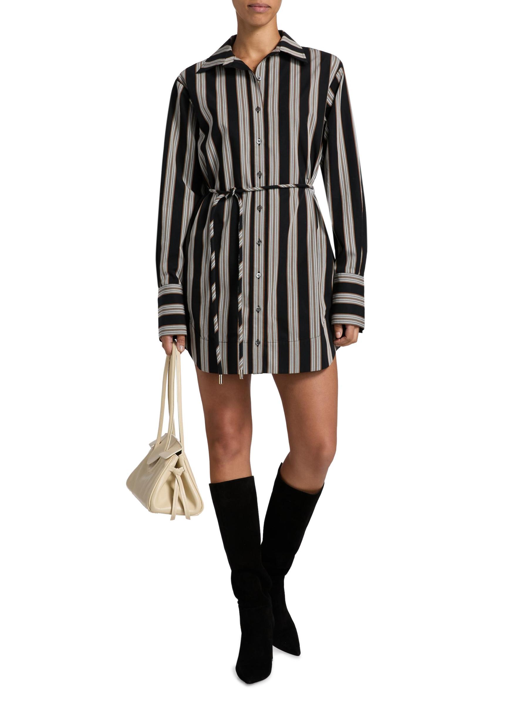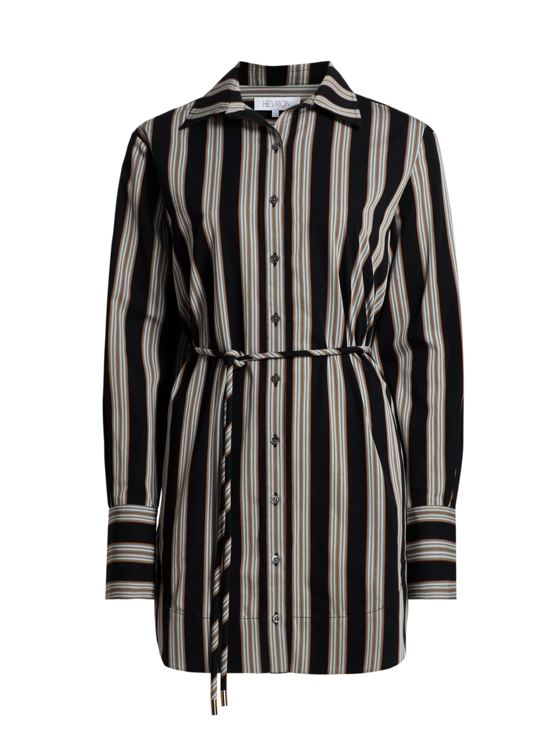 يتميز فستان Abby من Hevron بخطوط كلاسيكية معلقة على البوبلين القطني. تم تعزيز الصورة الظلية المريحة بربطة خصر نحيفة.طوق سبريد أساور بأزرار بأكمام طويلة حزام ربط ذاتي إغلاق بأزرار أمامية قطن بنسبة 100% يُغسل في الغسالة مستوردة
