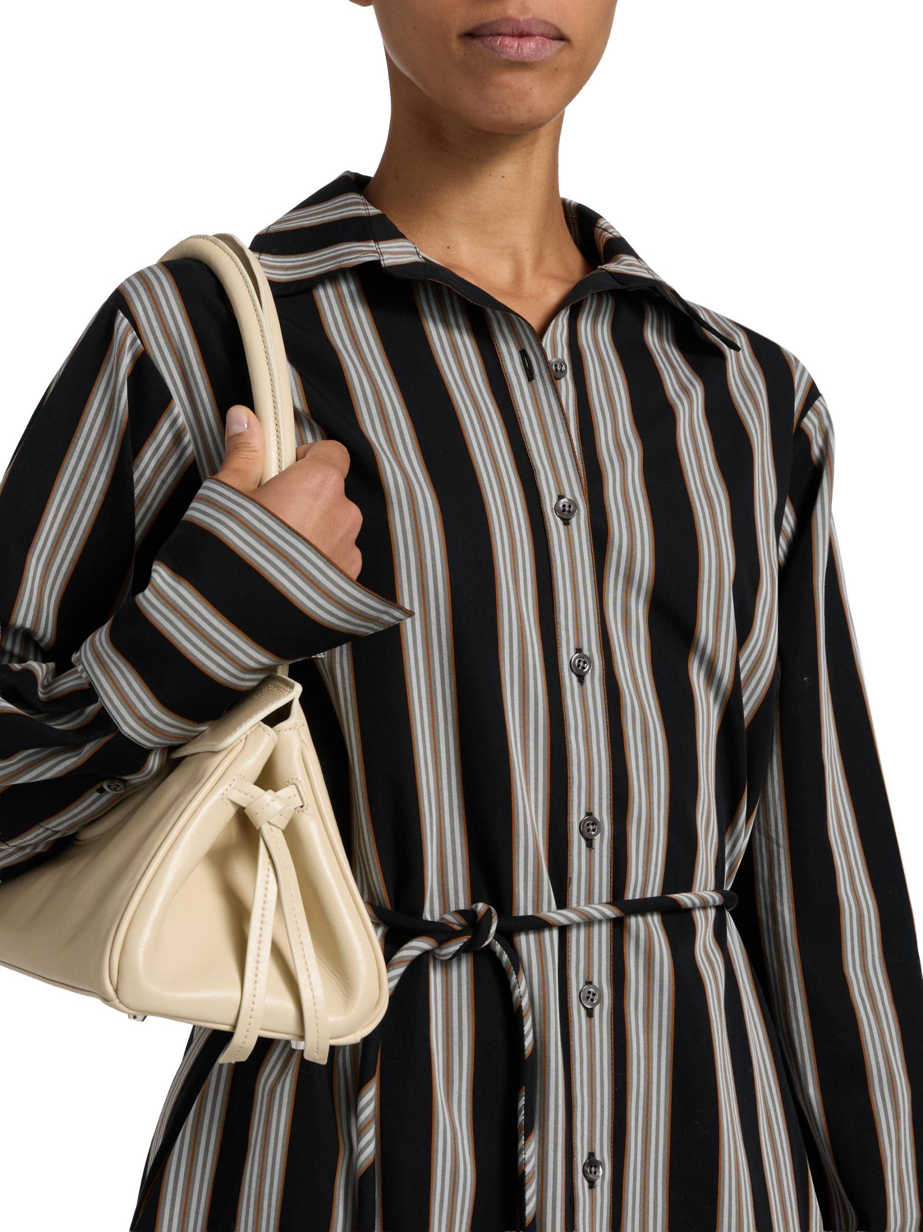 قميص آبي مخطط من البوبلين القطني برباط على الخصر