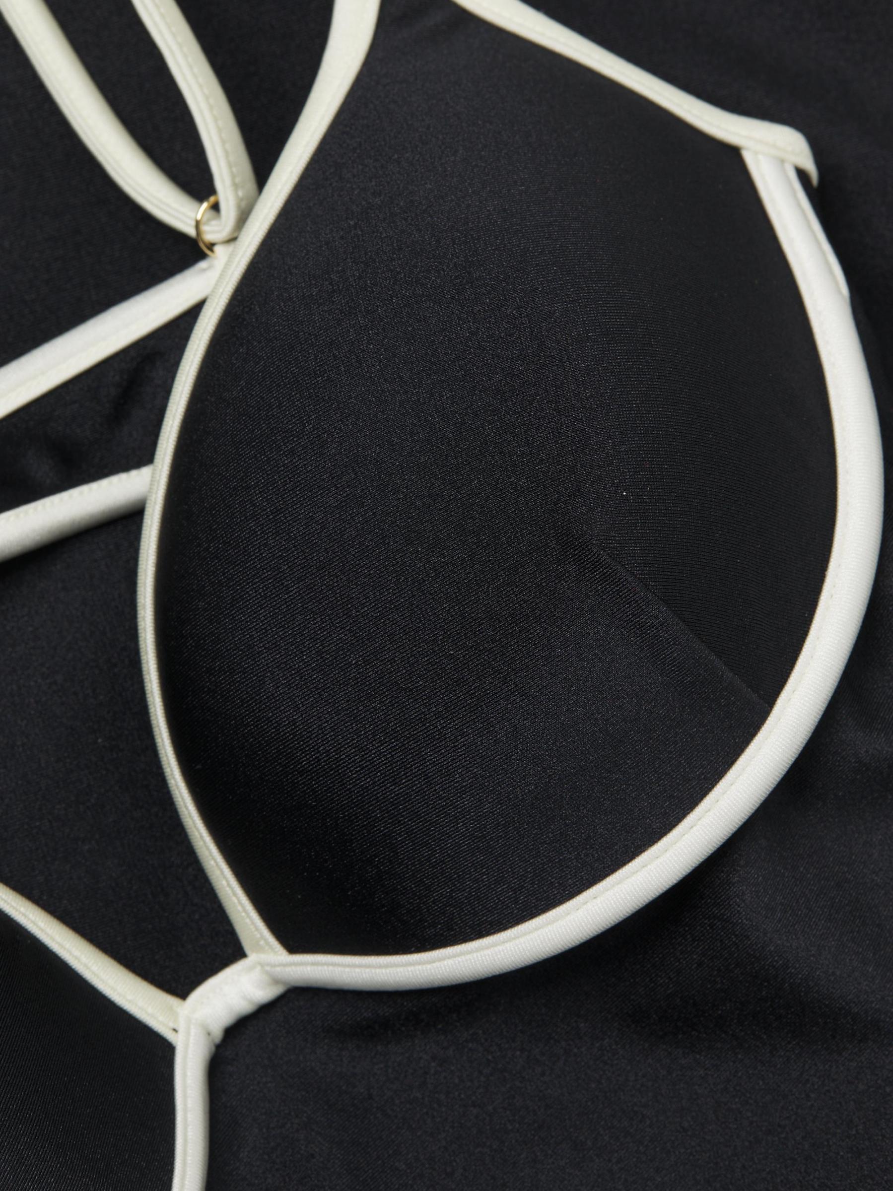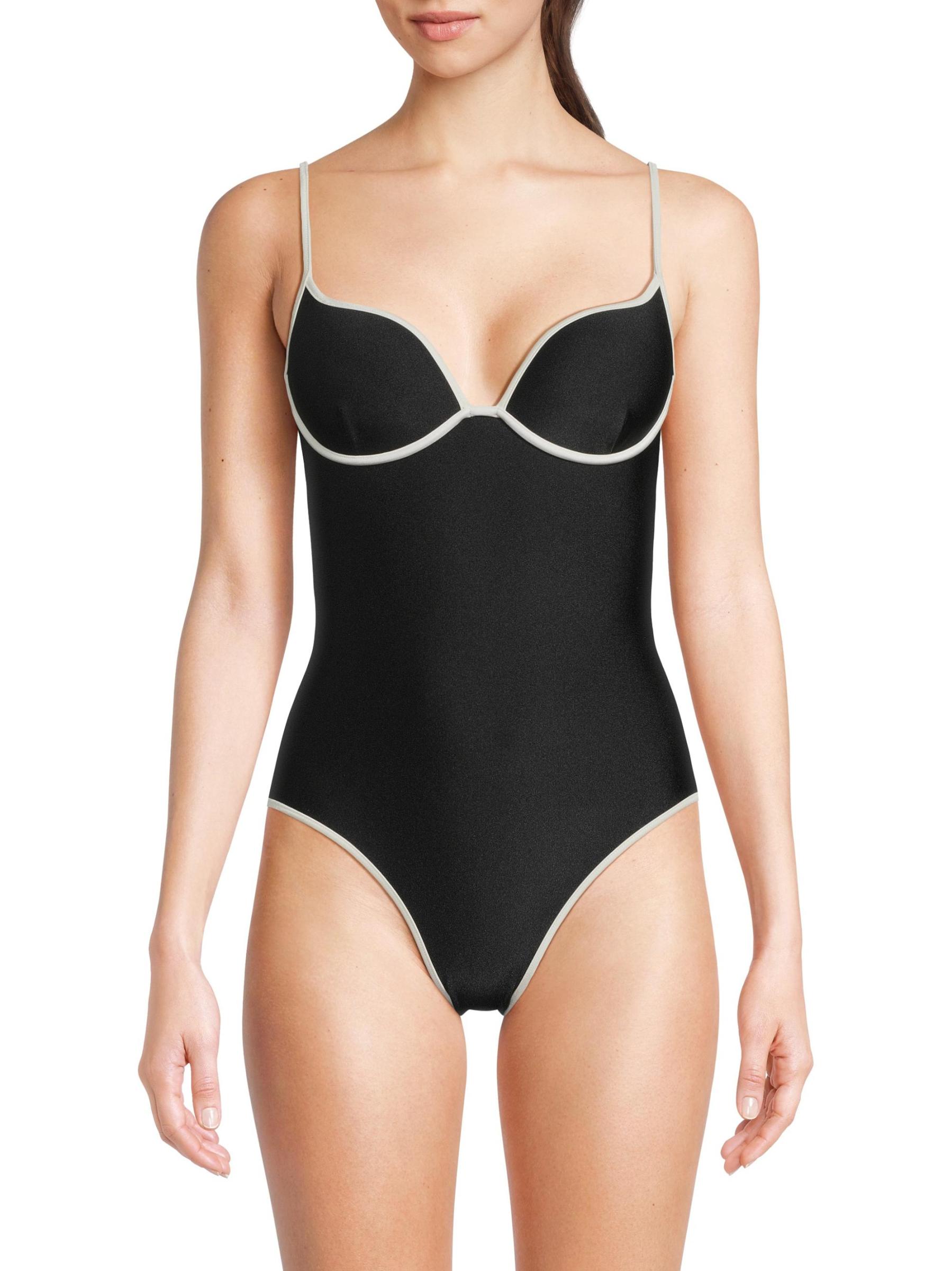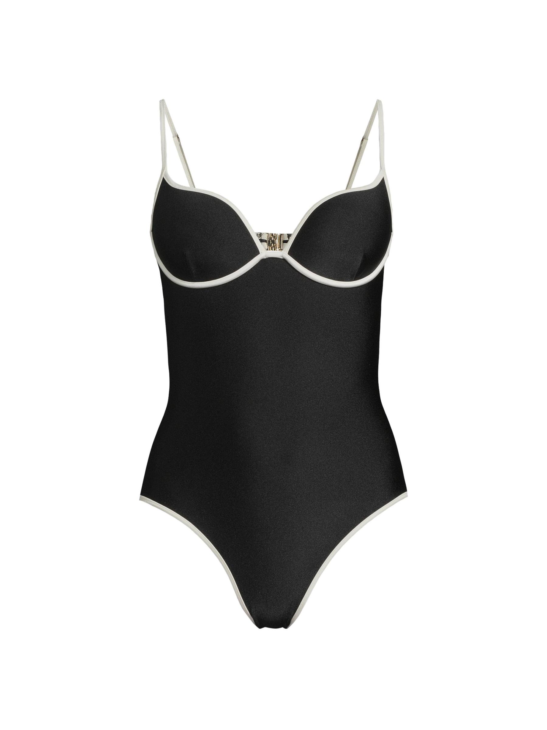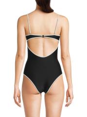بدلة السباحة آبي المكونة من قطعة واحدة من Shani Shani Shemer مصنوعة من قماش قابل للتمدد ومصممة برقبة على شكل قلب وتقليم بلون مغاير وفتحة ظهر مرحة.