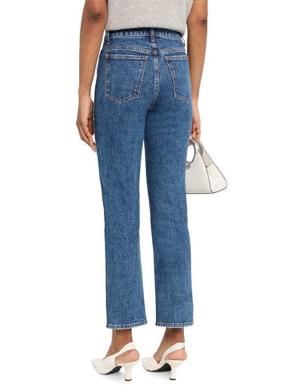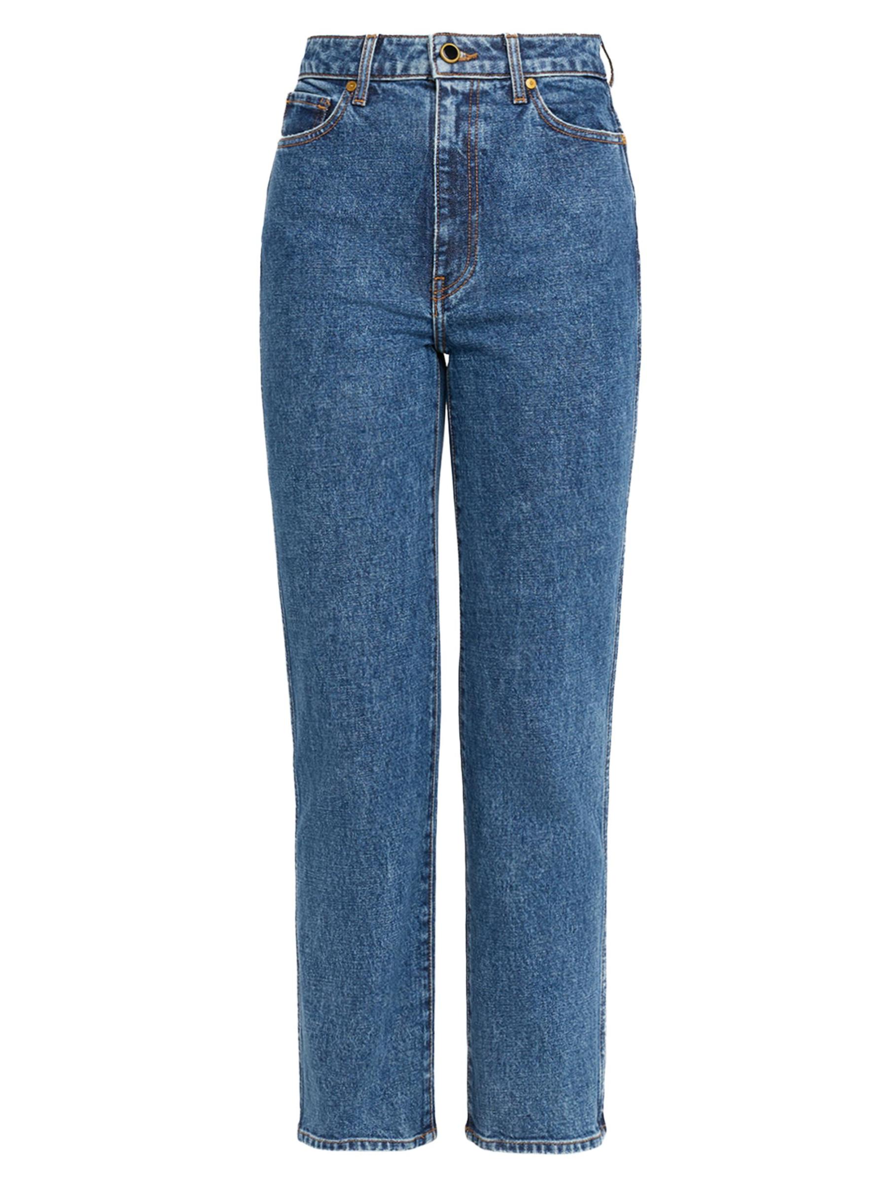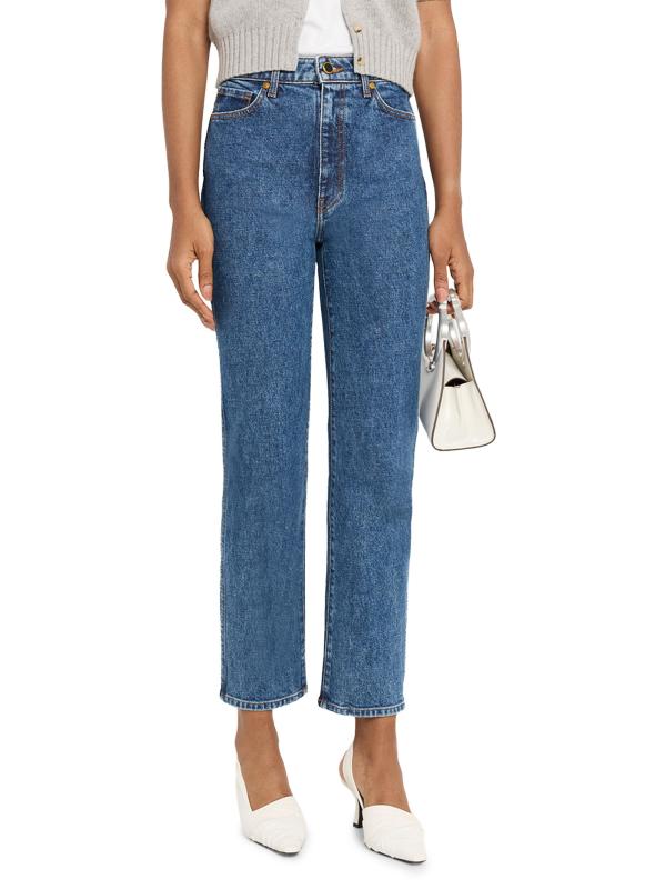 جينز أبيجيل من Khaite مصنوع من الدنيم المرن. تم تصميم هذا الزوج الشاهق بقصّة كلاسيكية نحيفة مقصوصة حتى الكاحل.