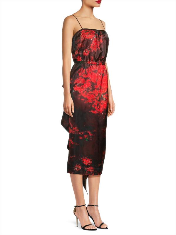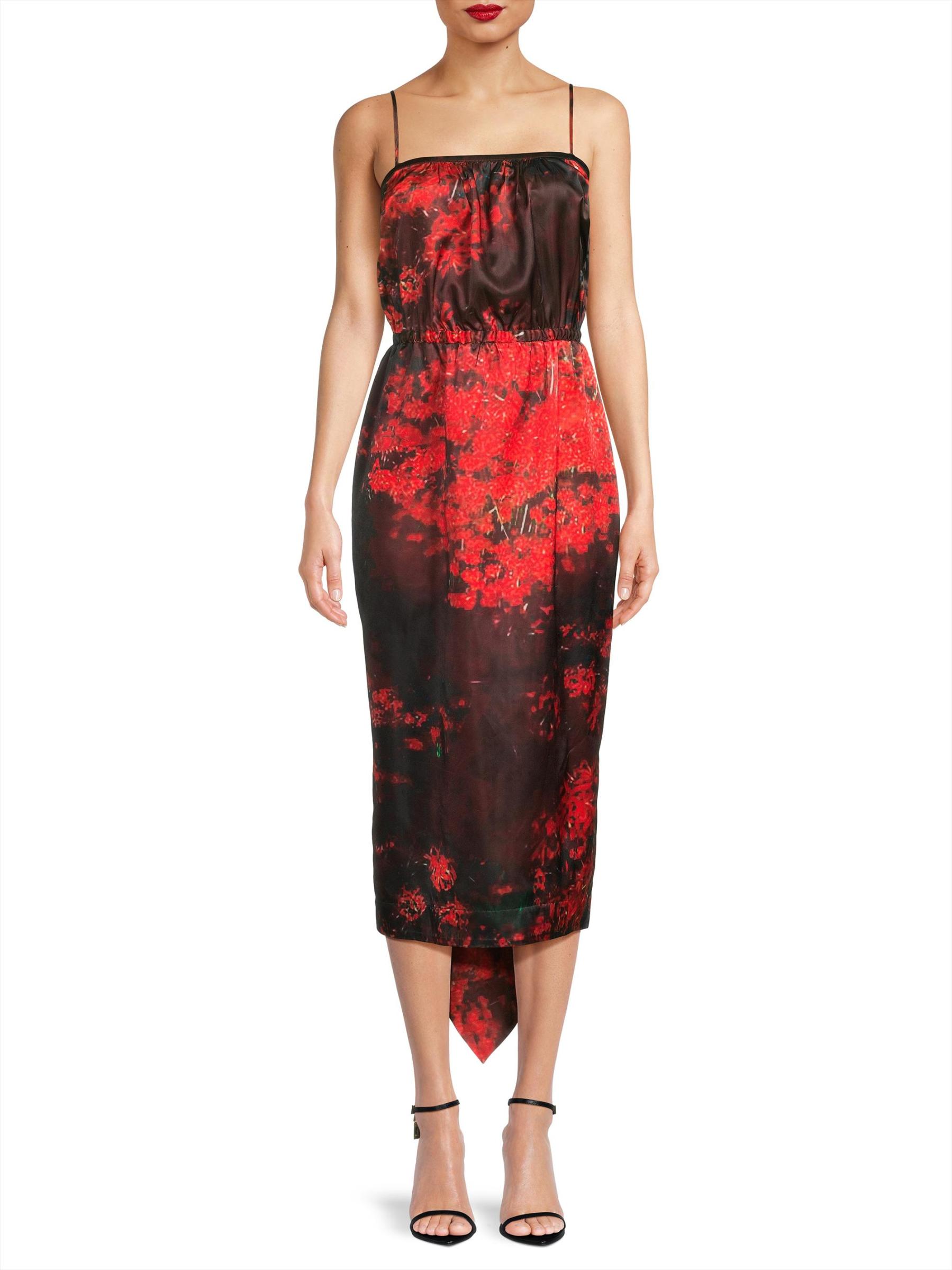 يتميز هذا الفستان المتوسط من Hope for Flowers بطبعة تجريدية وأشرطة سباغيتي وتفاصيل منسدلة مكشكشة متتالية في الخلف.رقبة مربعة أحزمة سباغيتي خصر مطاطي تسحب 100% أسيتات تنظيف جاف مستوردة