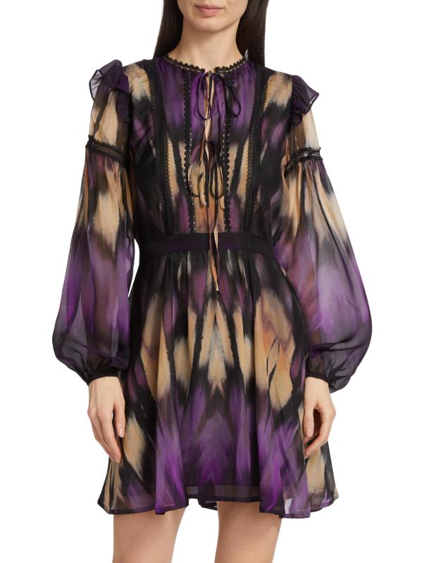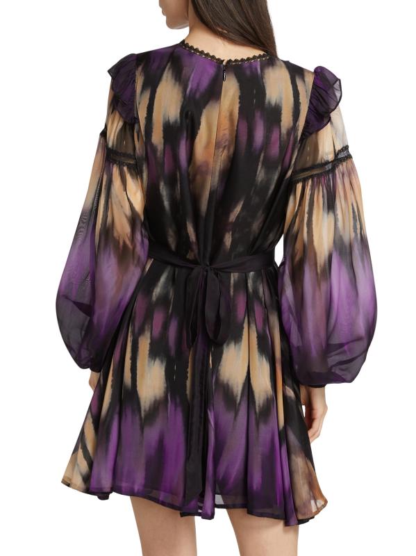 فستان قصير بتصميم تجريدي مزين بالدانتيل من جورجيت