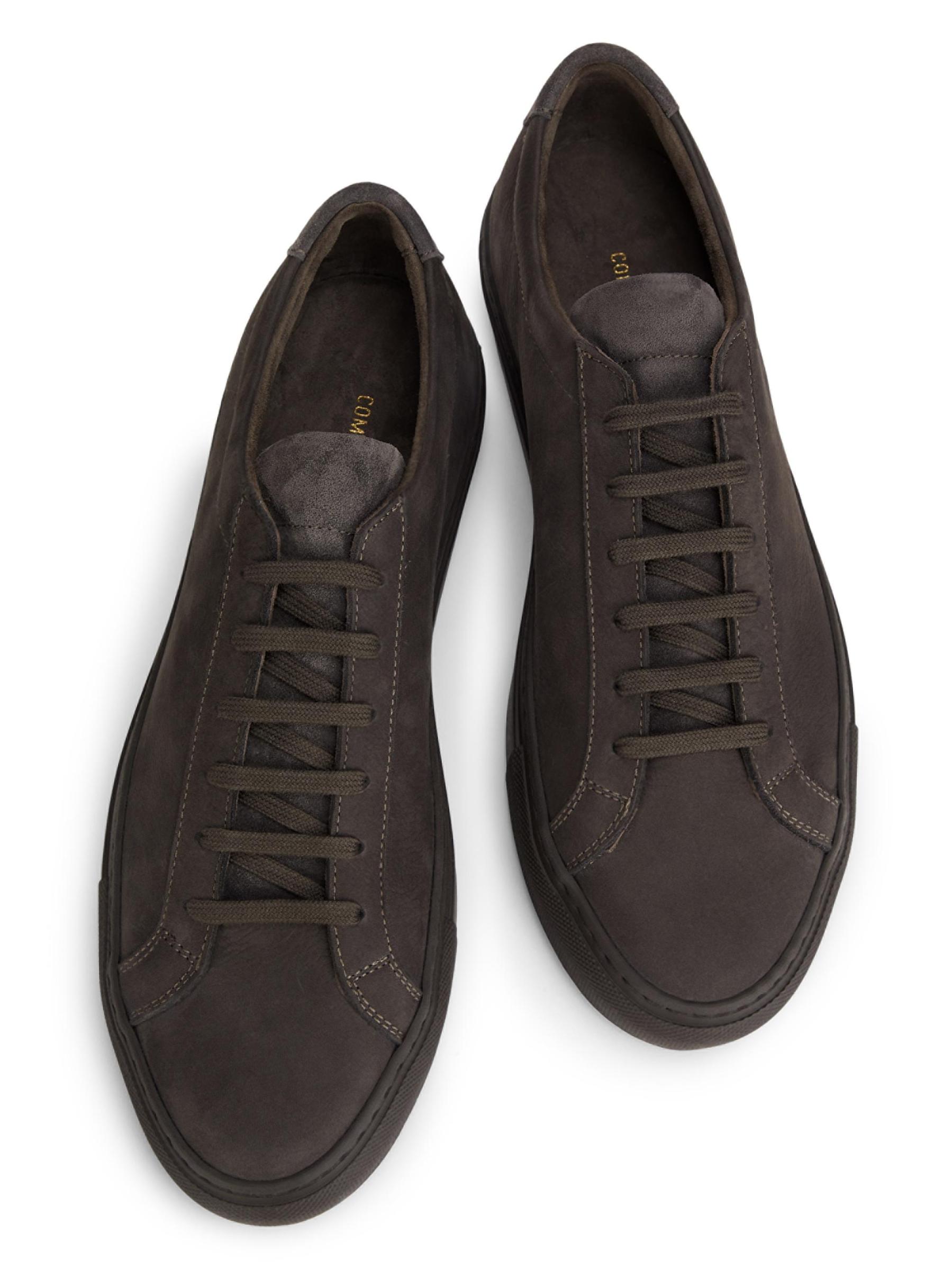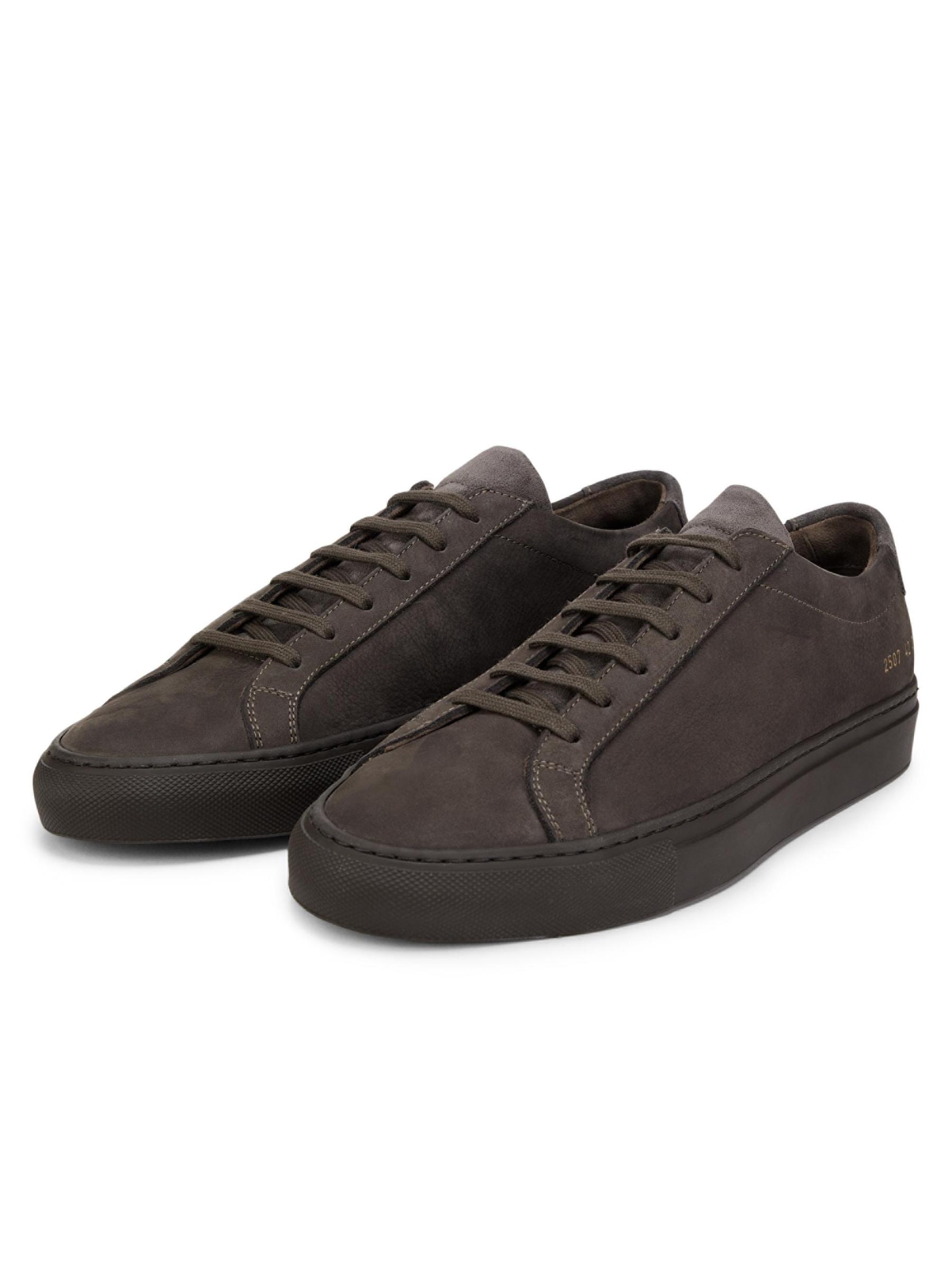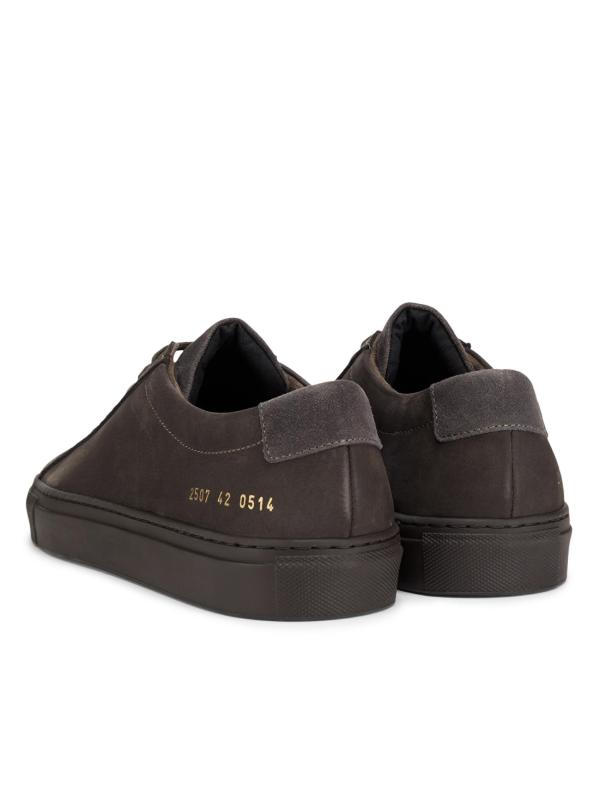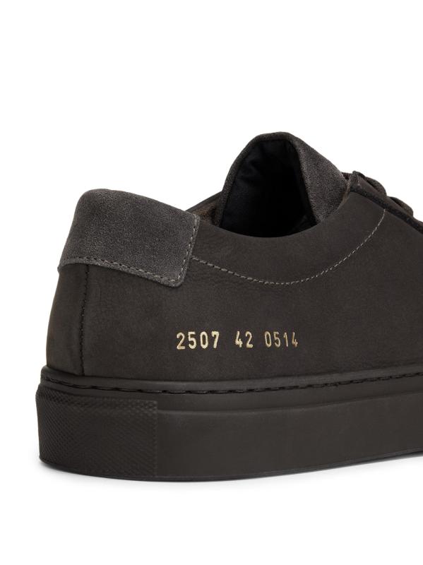 يتميز حذاء Common Projects Achilles ذو الرقبة المنخفضة هذا المصنوع من الجلد برباط متناسق ونعل مطاطي. تزين أرقام العلامة التجارية العشرة ذات اللون الذهبي الكعب الخارجي لهذا الطراز.