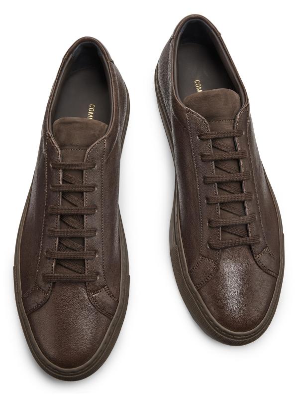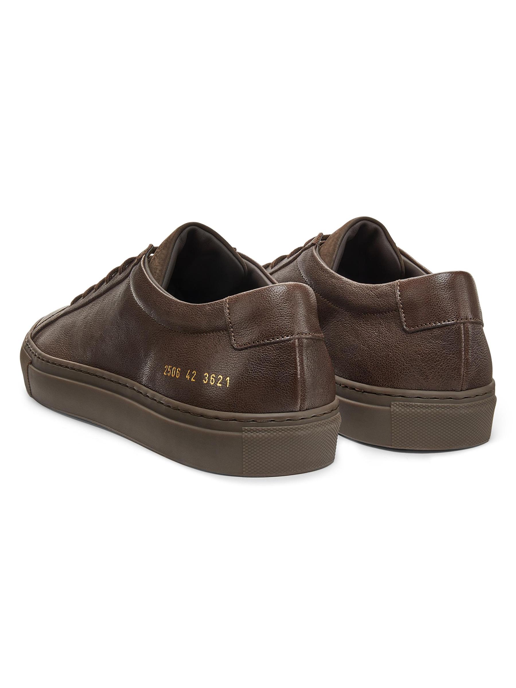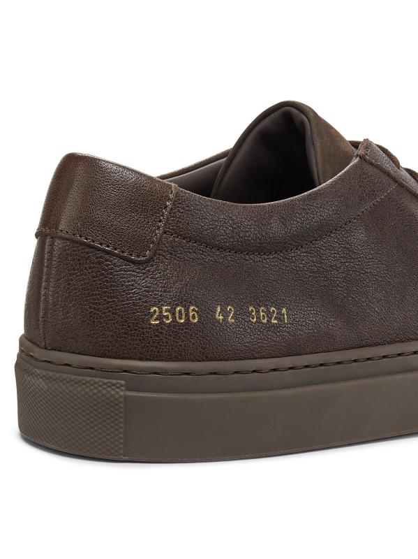 يتميز حذاء Common Projects Achilles Premium ذو الرقبة المنخفضة هذا المصنوع من الجلد برباط متناسق ونعل مطاطي. تزين أرقام العلامة التجارية العشرة ذات اللون الذهبي الكعب الخارجي لهذا الطراز.