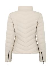 من مجموعة أكتيف فليكس. صُممت سترة Elora ذات الزخارف المتباينة من Moose Knuckles بحشوة سفلية قطيفة وبطانة شيفرون للحصول على الشكل.