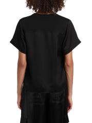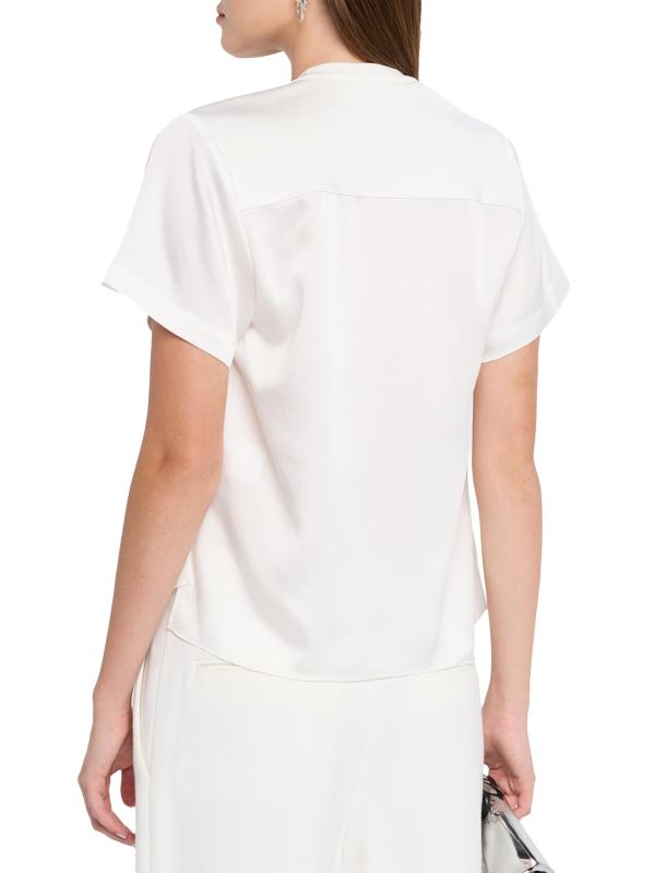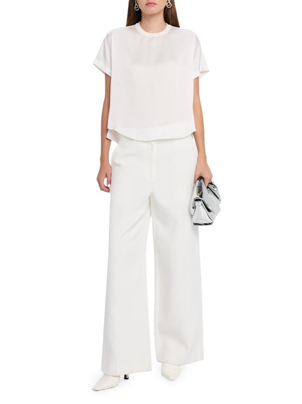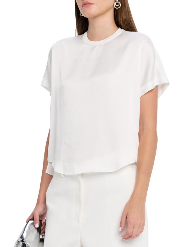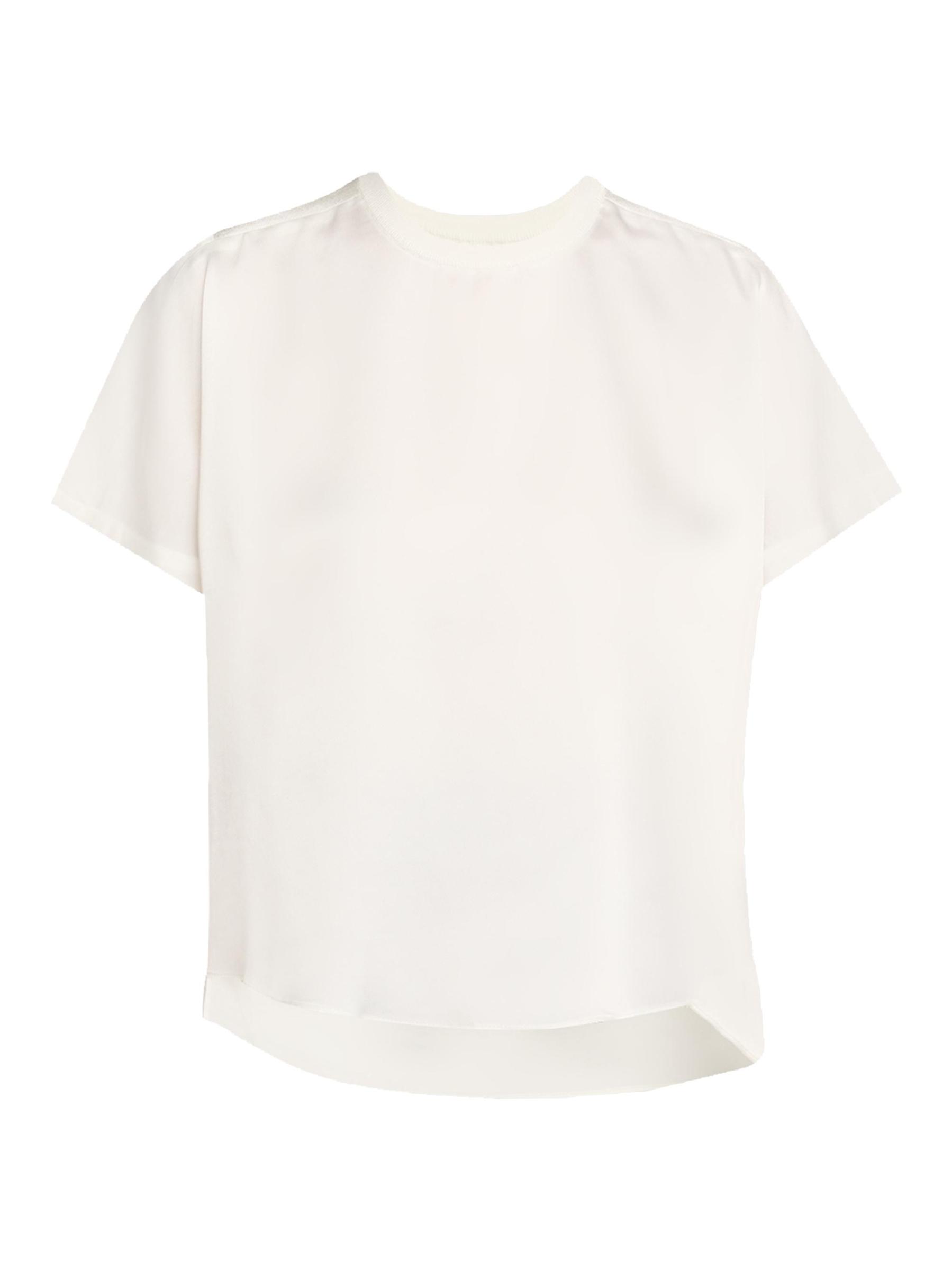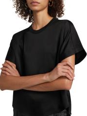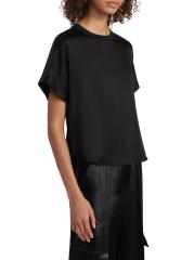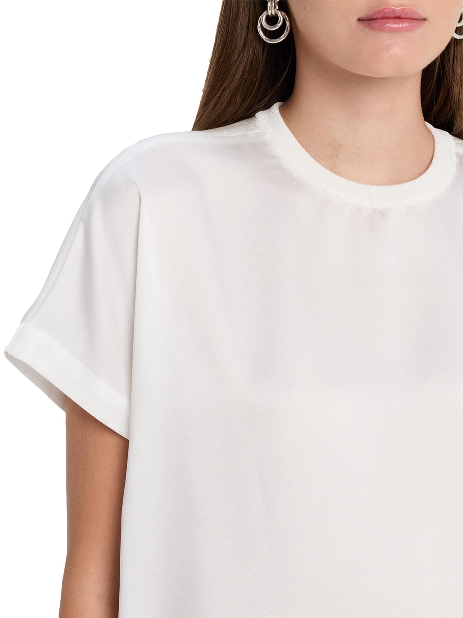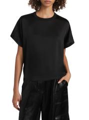 يتميز تي شيرت آدي من SIMKHAI، الذي يجمع بين الجيرسيه والساتان، بتصميم صندوقي برقبة مستديرة.