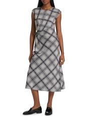 فستان أديليتا تشيك كريب ساتان متوسط الطول