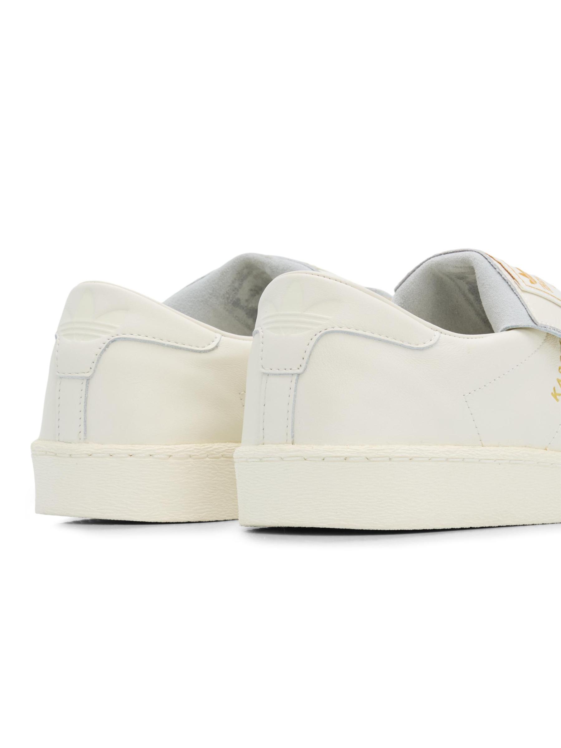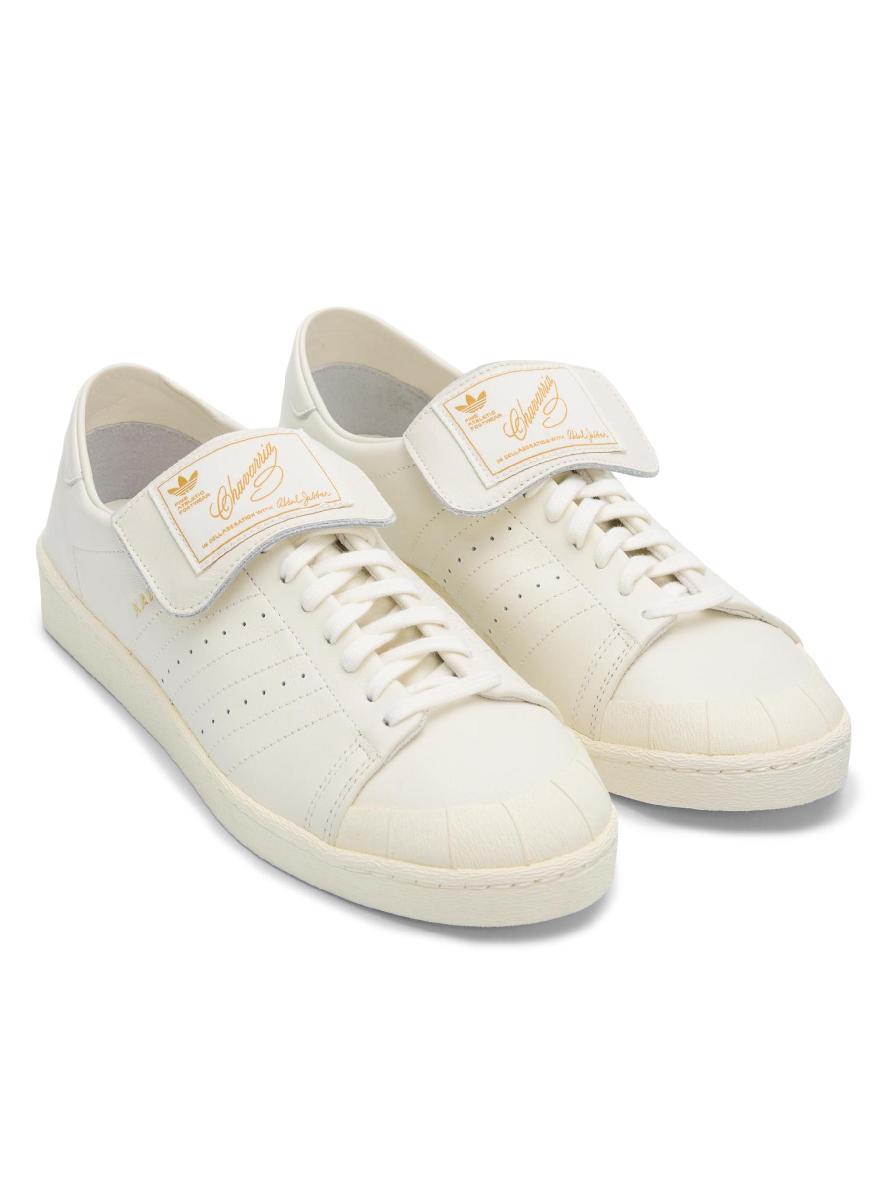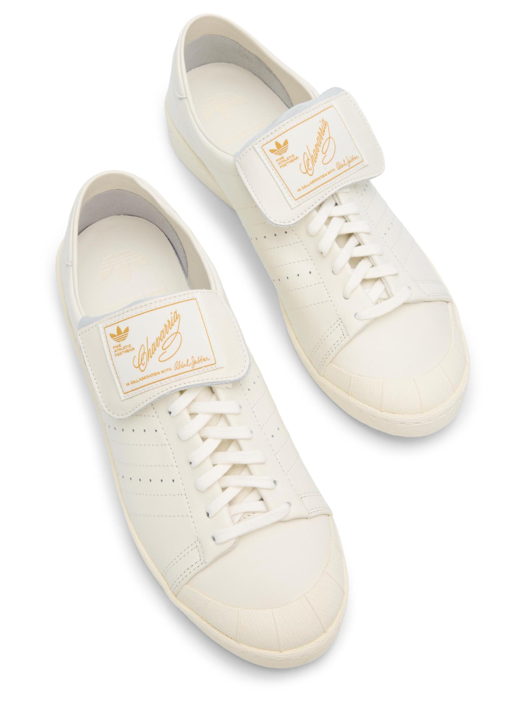 من تعاون أديداس مع ويلي شافاريا. هذا الحذاء الرياضي ذو الرقبة المنخفضة مصنوع من الجلد مع تصميم أديداس ثلاثي الخطوط ومزين برقع شعار Willy Chavarria على اللسان القابل للطي.