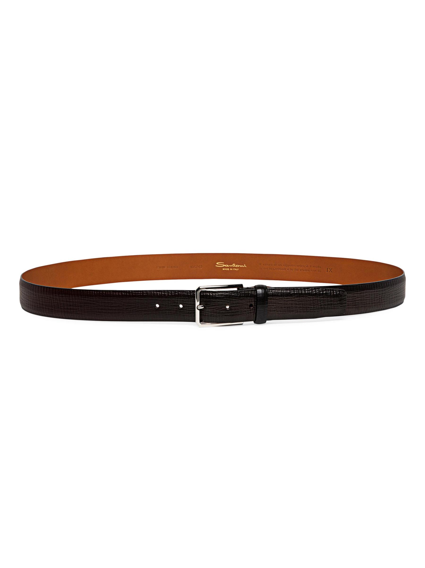 يتميز حزام Santoni الجلدي بعرض متعدد الاستخدامات ومشبك نحاسي قابل للتعديل.