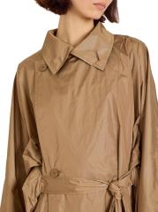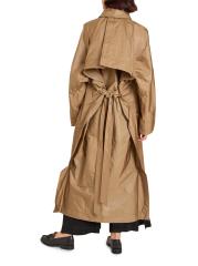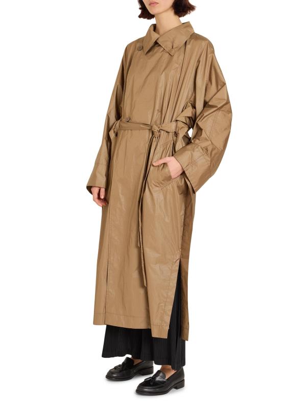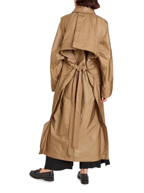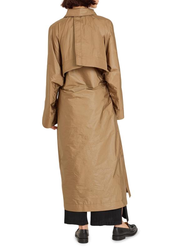 تم تصميم معطف المطر Aerial Steel من Issey Miyake بحزام قابل للربط الذاتي وغطاء مقاوم للعواصف وجيوب جانبية. تتميز هذه القطعة، التي تم تشطيبها بأسلوب لامع، بتصميم مزدوج الصدر.