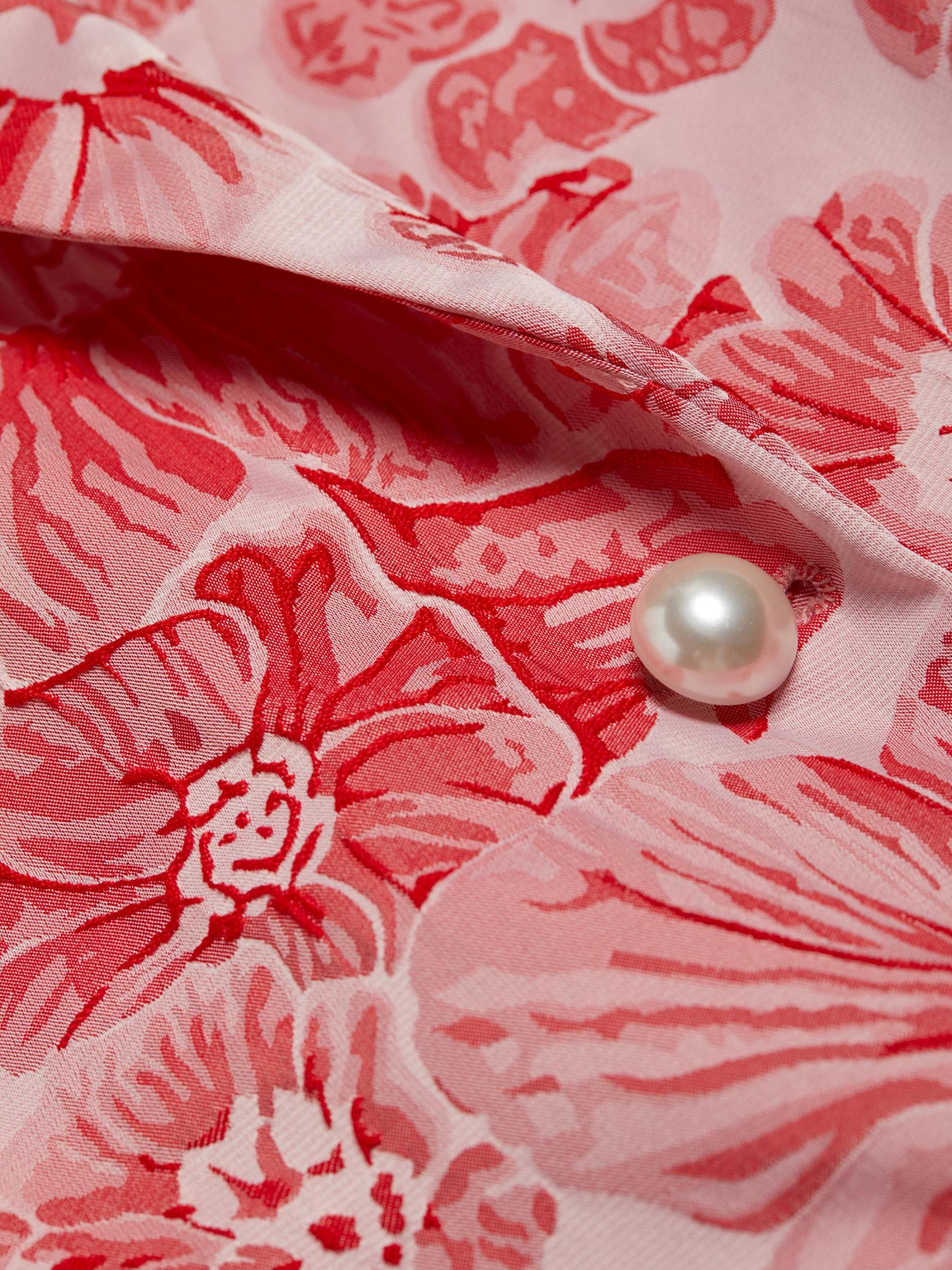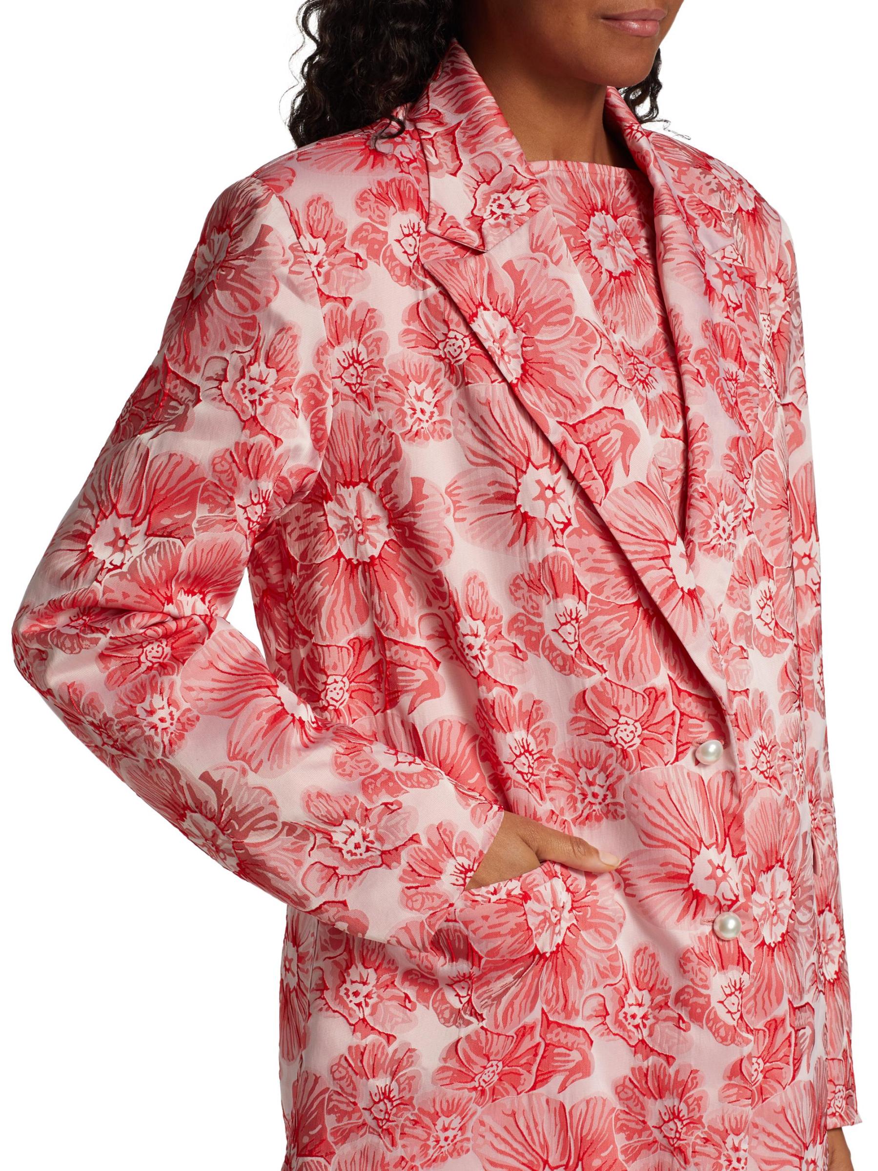 تم تصميم سترة Agnes من BATSHEVA في شكل صندوقي كبير الحجم وتتميز بطبعة زهور مرسومة بشكل جميل. تم الانتهاء من هذا النمط المريح بأزرار اللؤلؤ الصناعي لمزيد من الذوق.