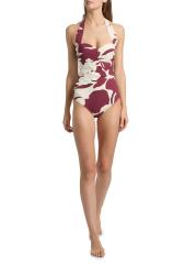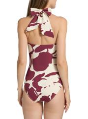 تم تصميم ملابس السباحة كيارا بوني لا بيتيت روب بتقويرة رومنسية وتتميز بأحزمة على شكل رسن. تم تزيين هذه القطعة الواحدة بطبعة Agniya التجريدية للعلامة التجارية.