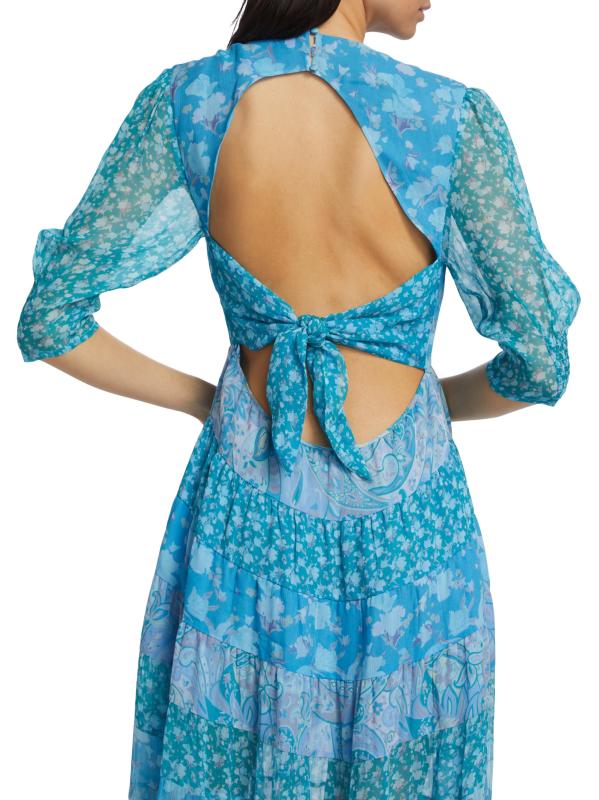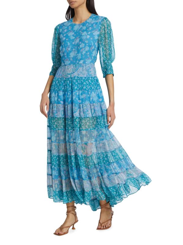 يتميز فستان Agyness maxi من Rixo بتصميم على شكل حرف A مع تنورة منسدلة وأكمام بلوزون بطول الكوع. تضفي المطبوعات الزهرية والبيزلي المرسومة يدويًا مزيدًا من الأناقة على المظهر.