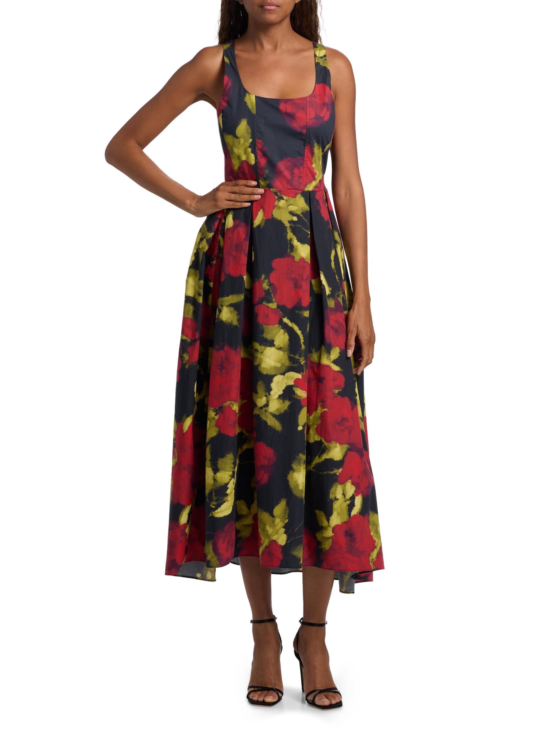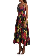 فستان متوسط الطول من البوبلين بنقشة الزهور من أيشاني