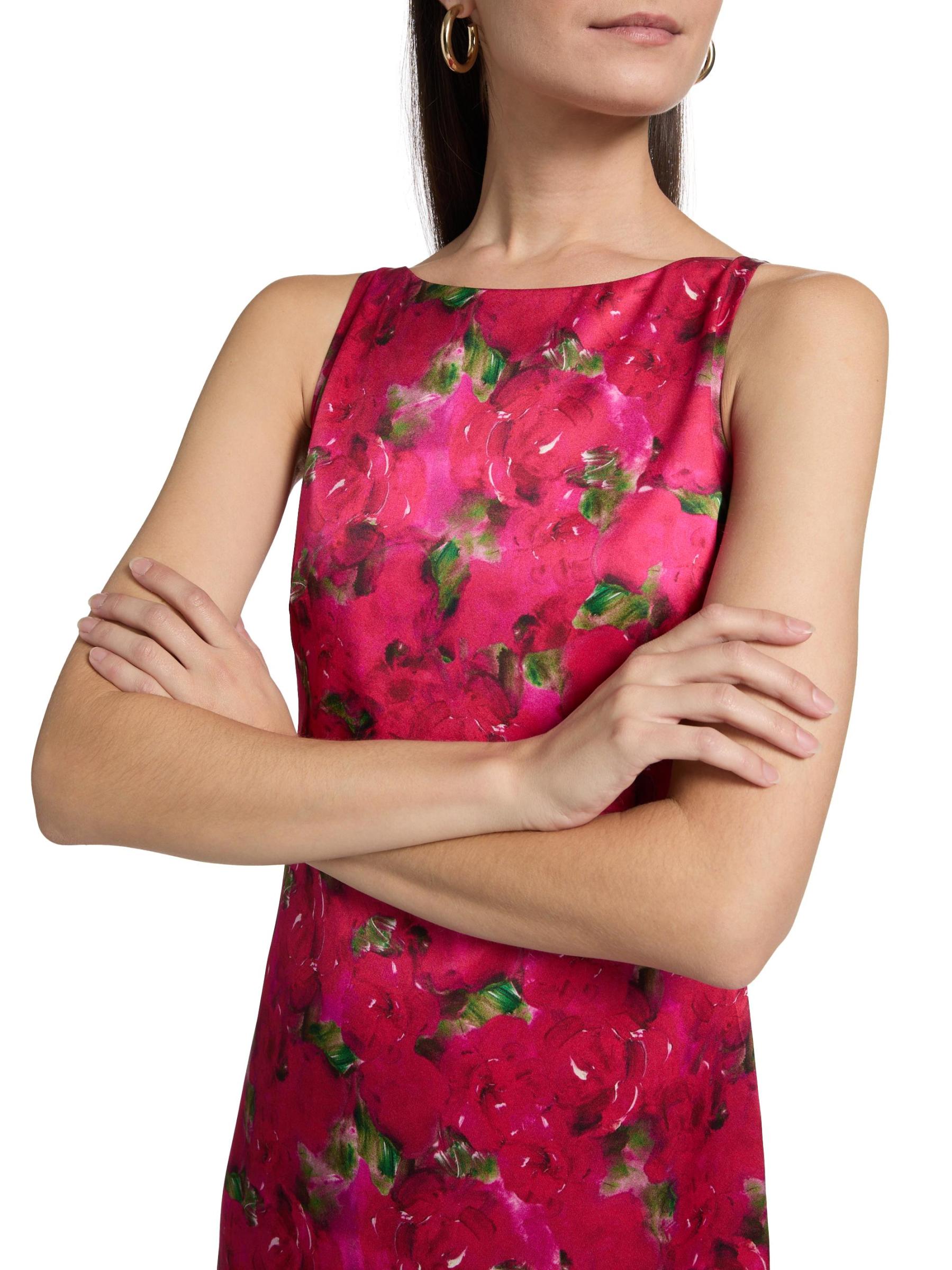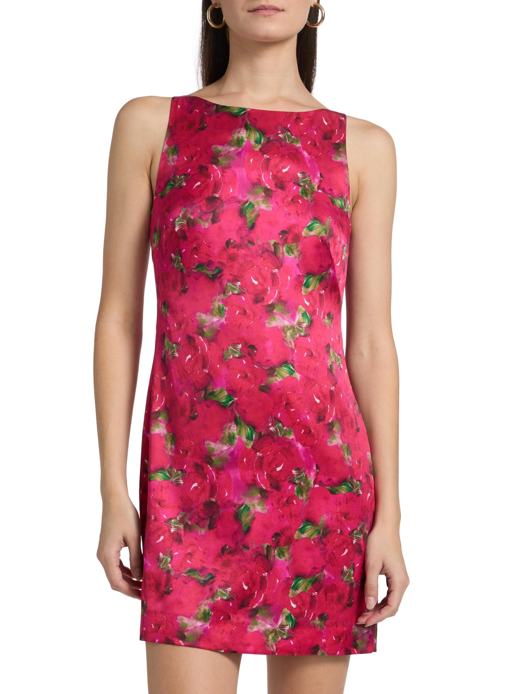 صُنع فستان ألبا الصغير من سالوني من مزيج الحرير المرن ويزهر بنقشة الأزهار النابضة بالحياة. ويكتمل المظهر بتقويرة كلاسيكية على شكل قارب وتصميم بنمط شيفت.