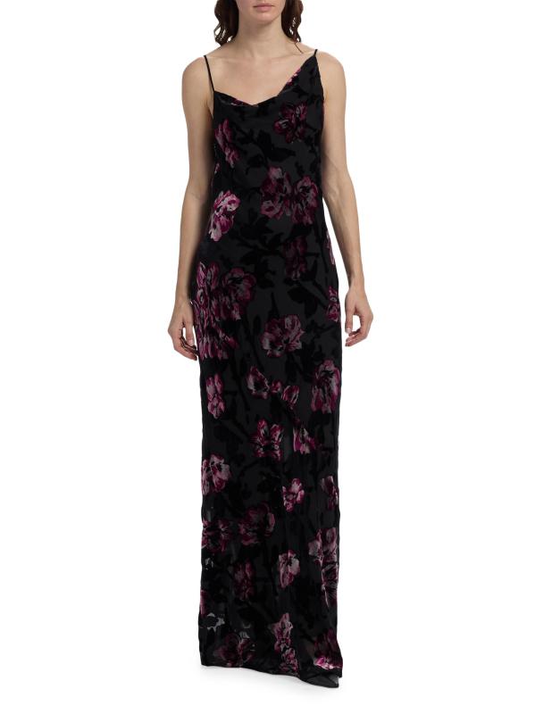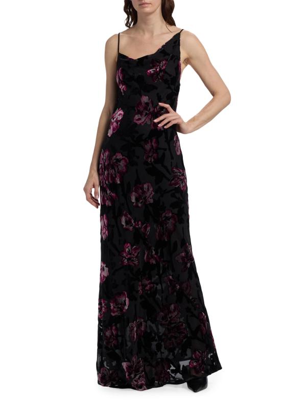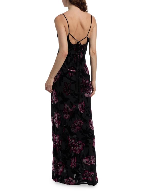 يتميز فستان Alenoy من Sabina Musáyev المصنوع من المخمل بنقشة الأزهار وفتحة رقبة على شكل قوس غير متماثلة.رقبة غير متماثلة أحزمة سباغيتي إغلاق برباط خلفي 60% نايلون/ 40% حرير صناعي غسيل يدوي مستوردة